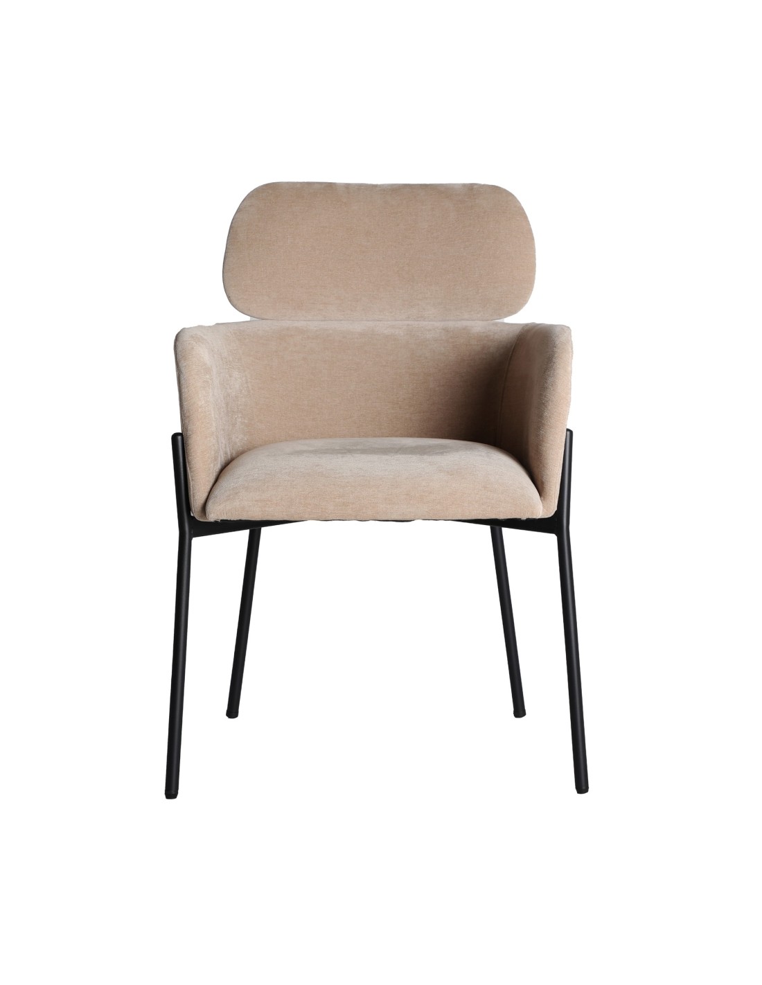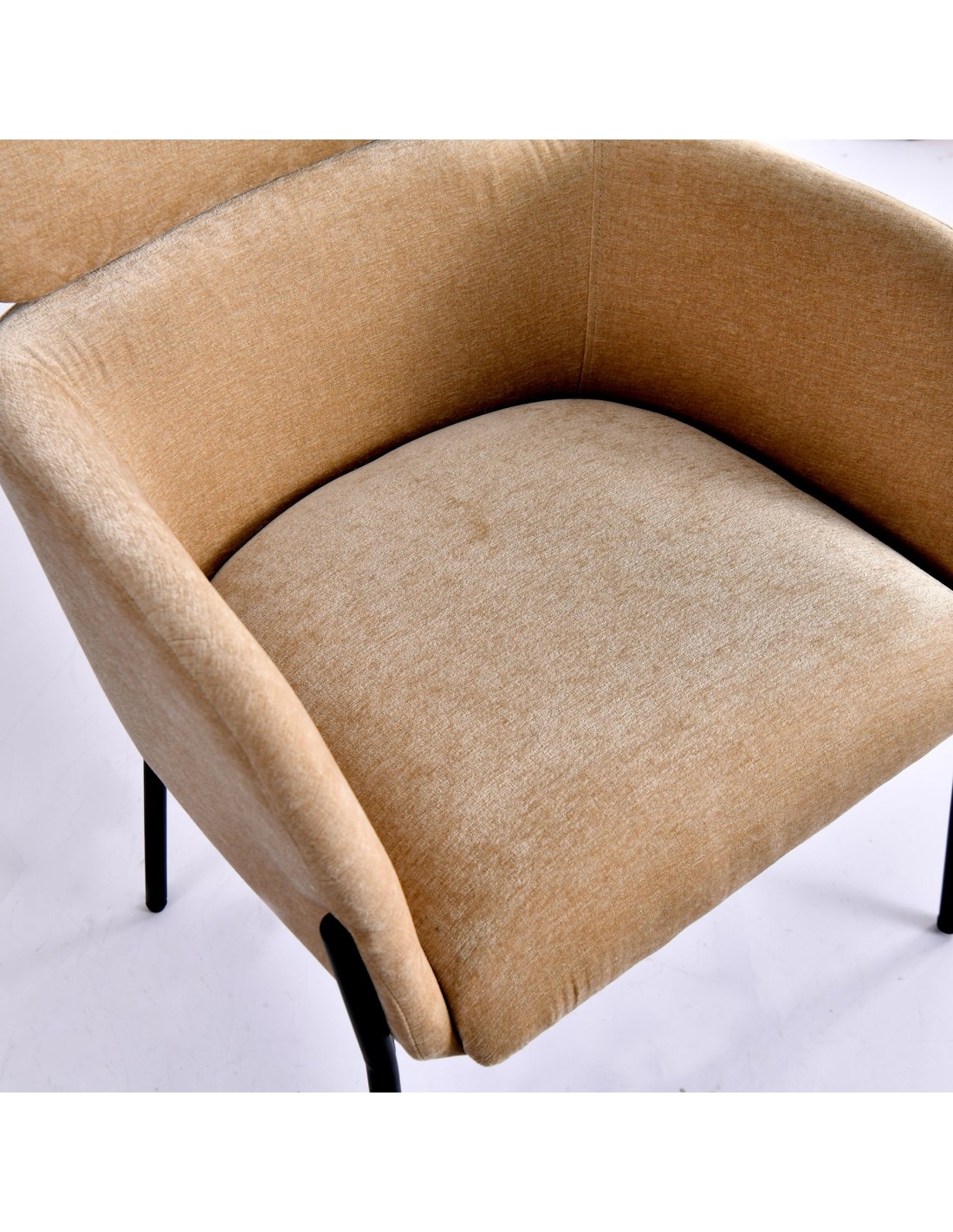 Silla rectangular Cresse de estilo Vintage, fabricada en poliéster en color marrón claro y hierro en colores negro y sin.