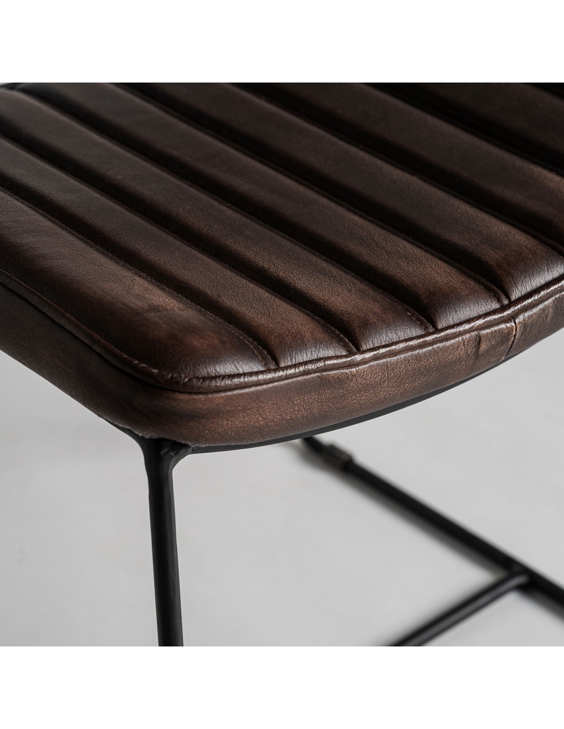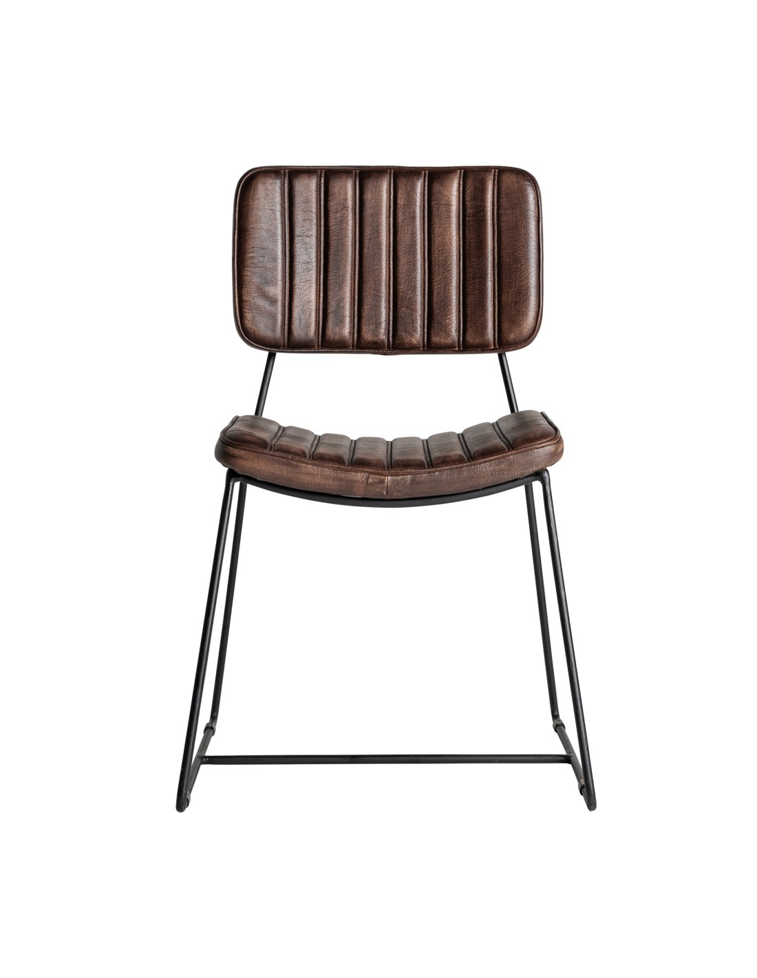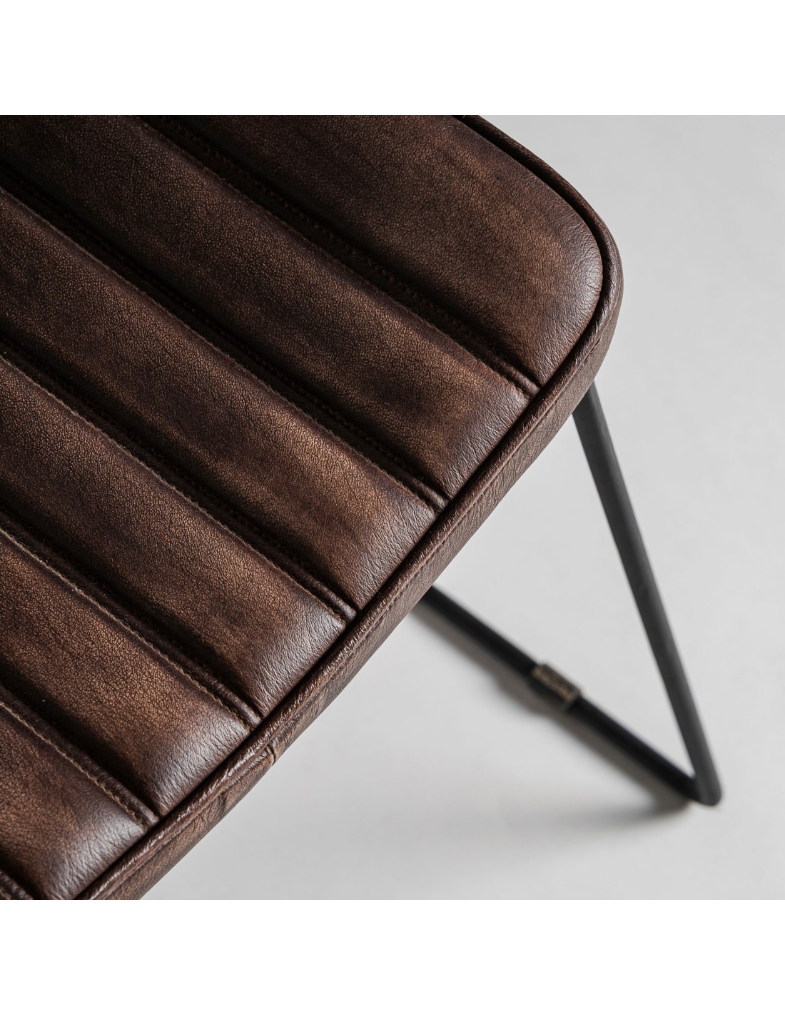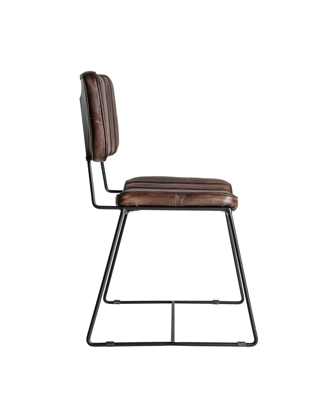 Silla Issert de estilo Vintage, fabricada en piel en color marrón y hierro en color negro.
