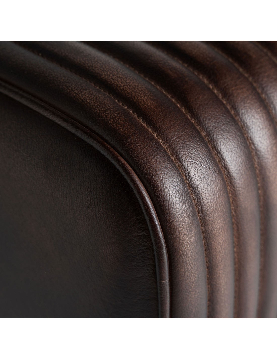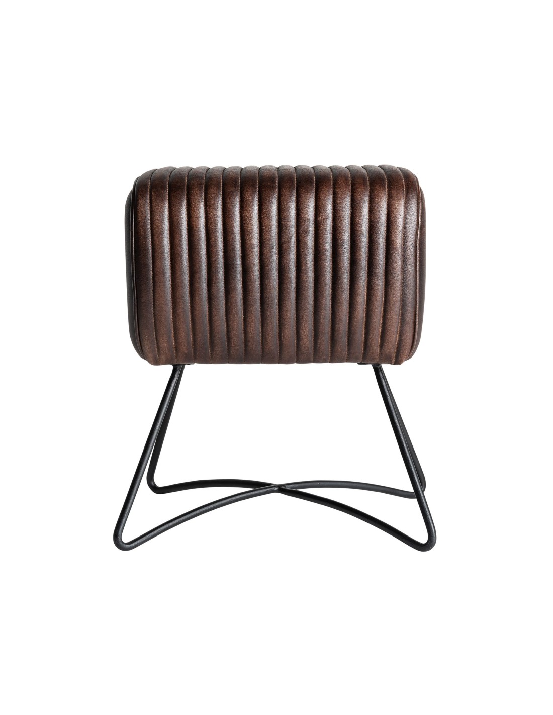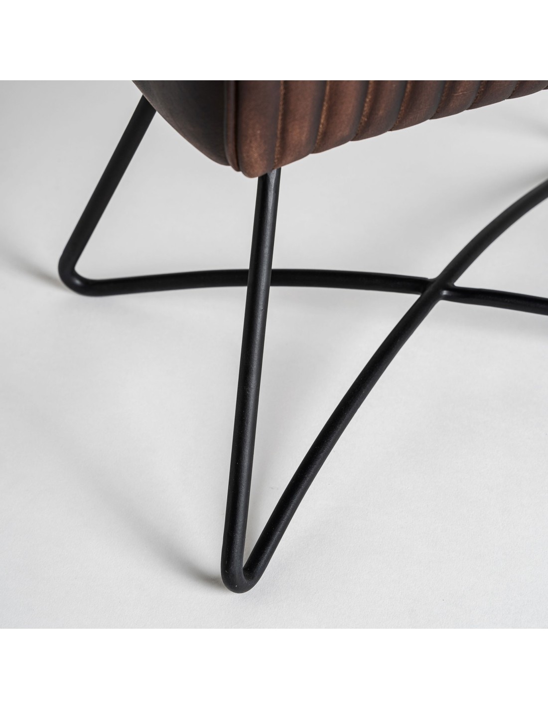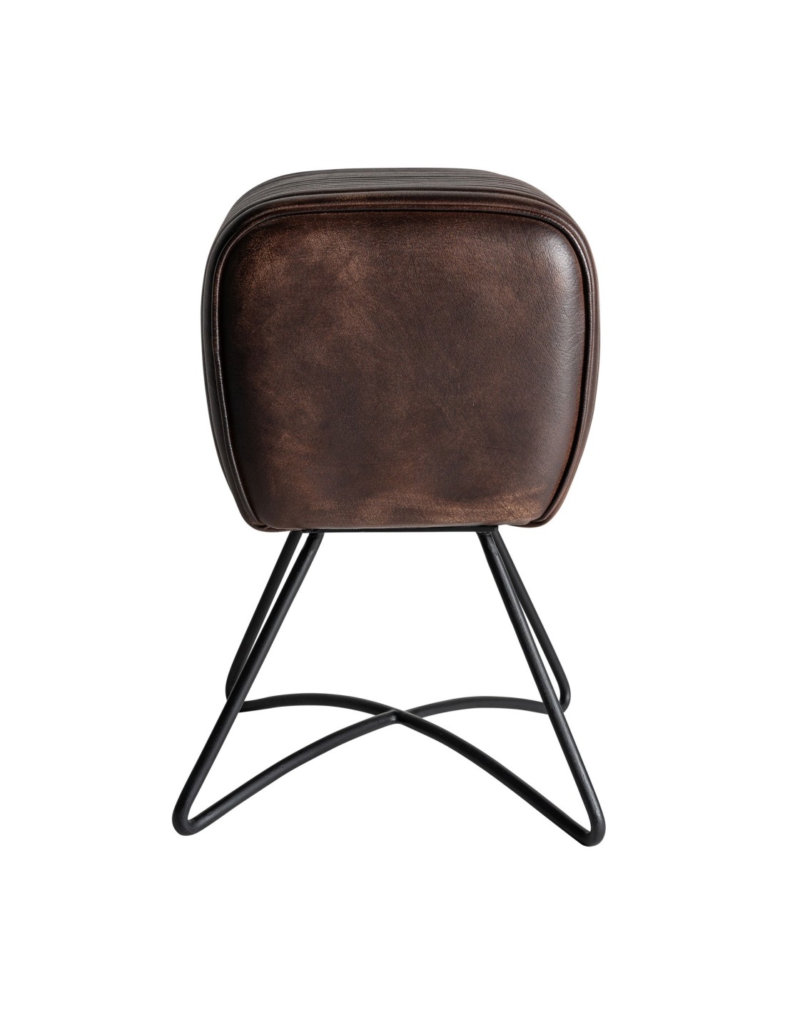 Taburete Gladys de estilo Vintage, fabricado en piel en color marrón y hierro en color negro.
