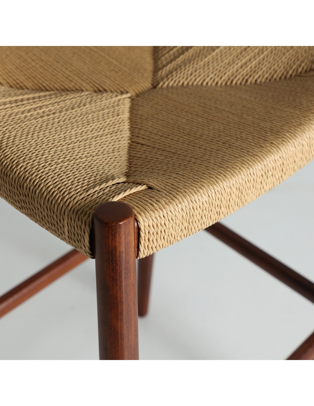 Taburete Zelhem de estilo Nórdico, fabricado en madera de haya en color marrón y cuerda en color beige.