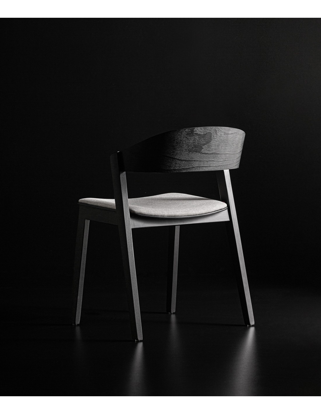 Silla Borken de estilo Moderno, fabricada en madera de haya en color negro y poliéster en color gris.