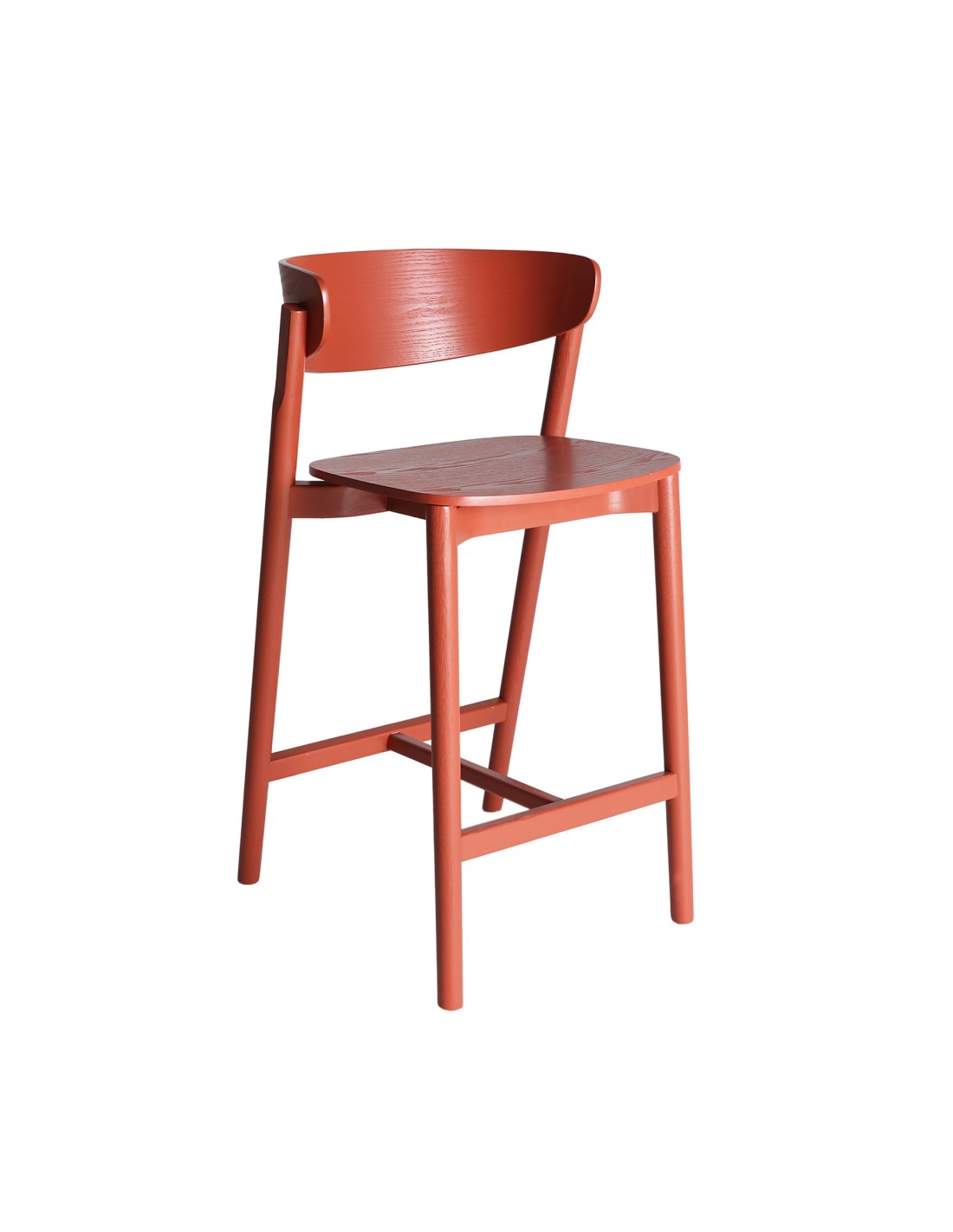 Taburete Vreden de estilo Vintage, fabricado en madera de fresno en color rojo.