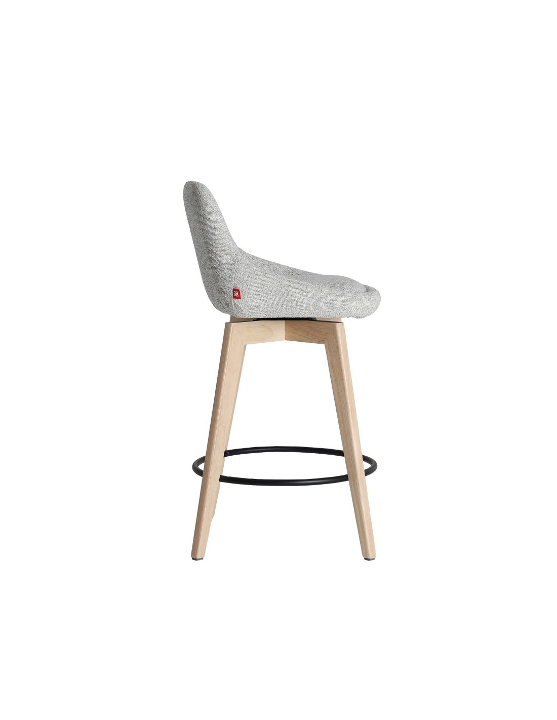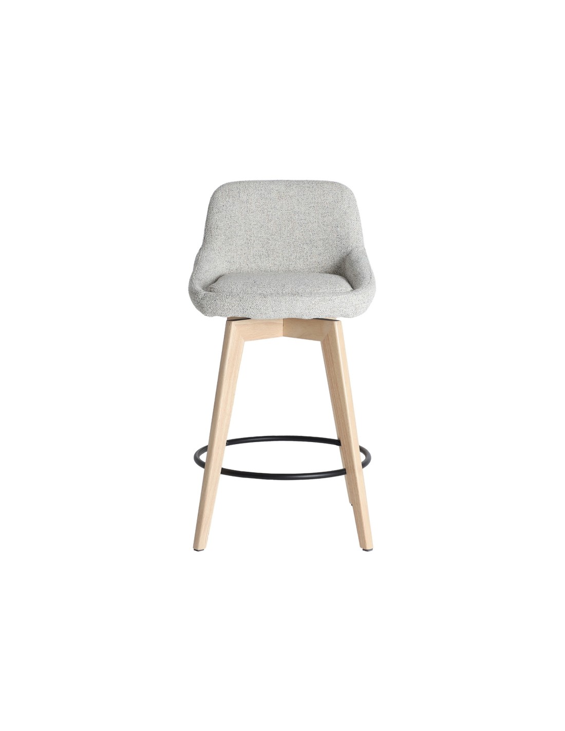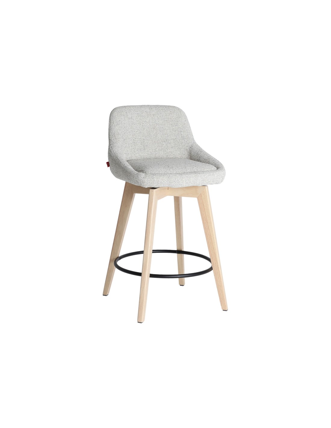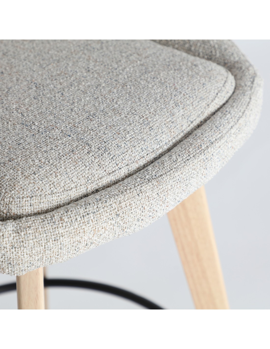 Taburete Arvieu de estilo Contemporáneo, fabricado en madera de caucho en color marrón claro, acero en color negro y poliéster en color blanco roto. Producto desmontable.