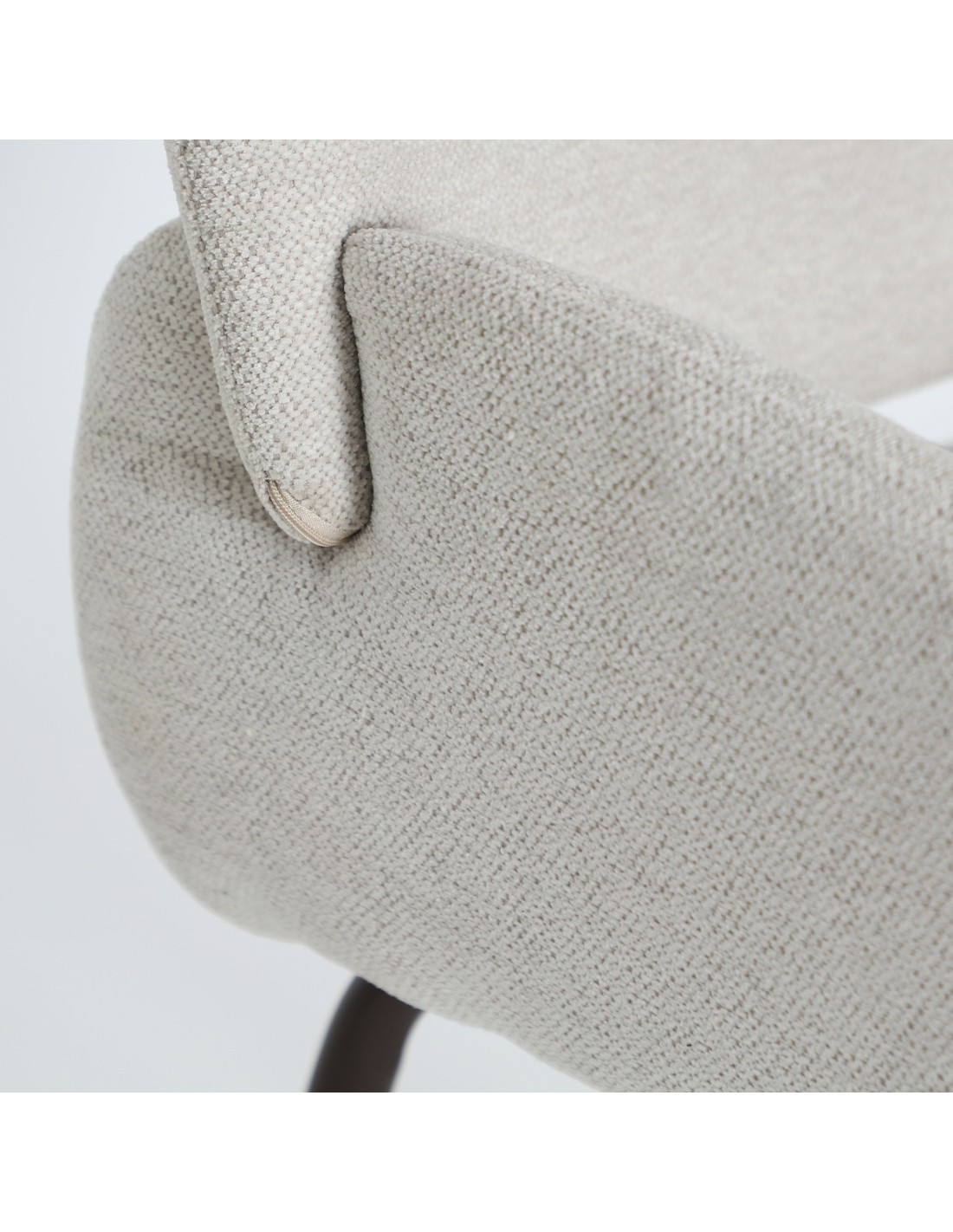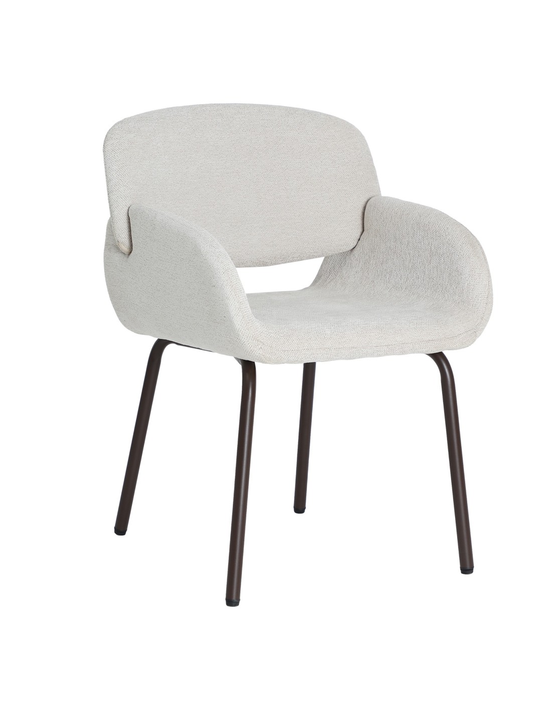 Silla Noor de estilo Contemporáneo, fabricada en poliéster en color blanco roto, hierro en color marrón y espuma. Producto desmontable.