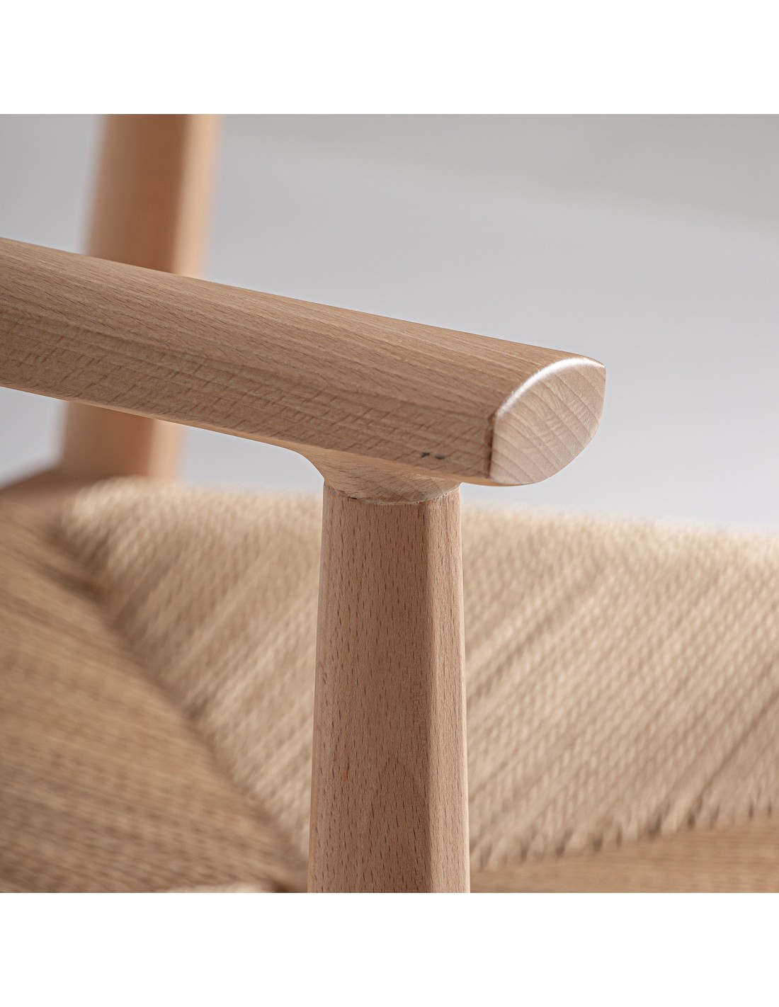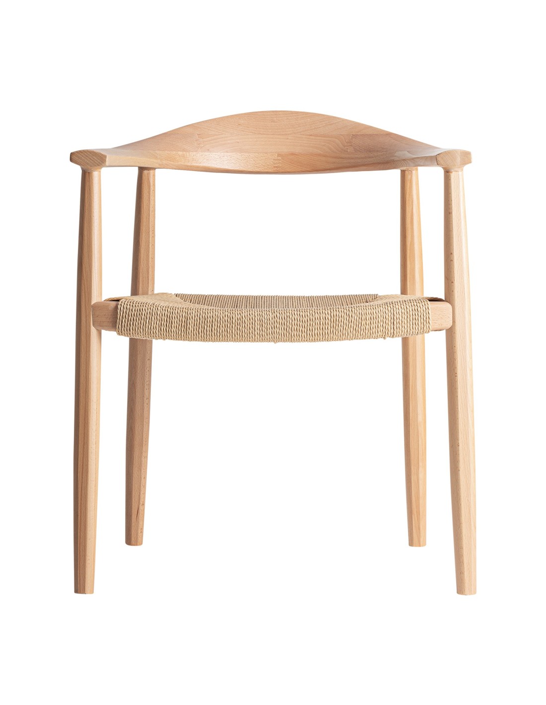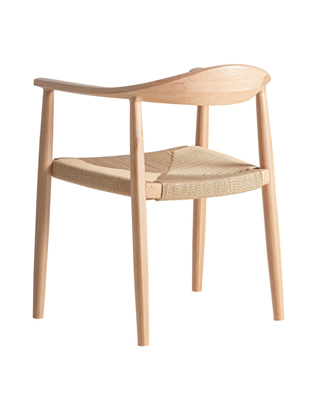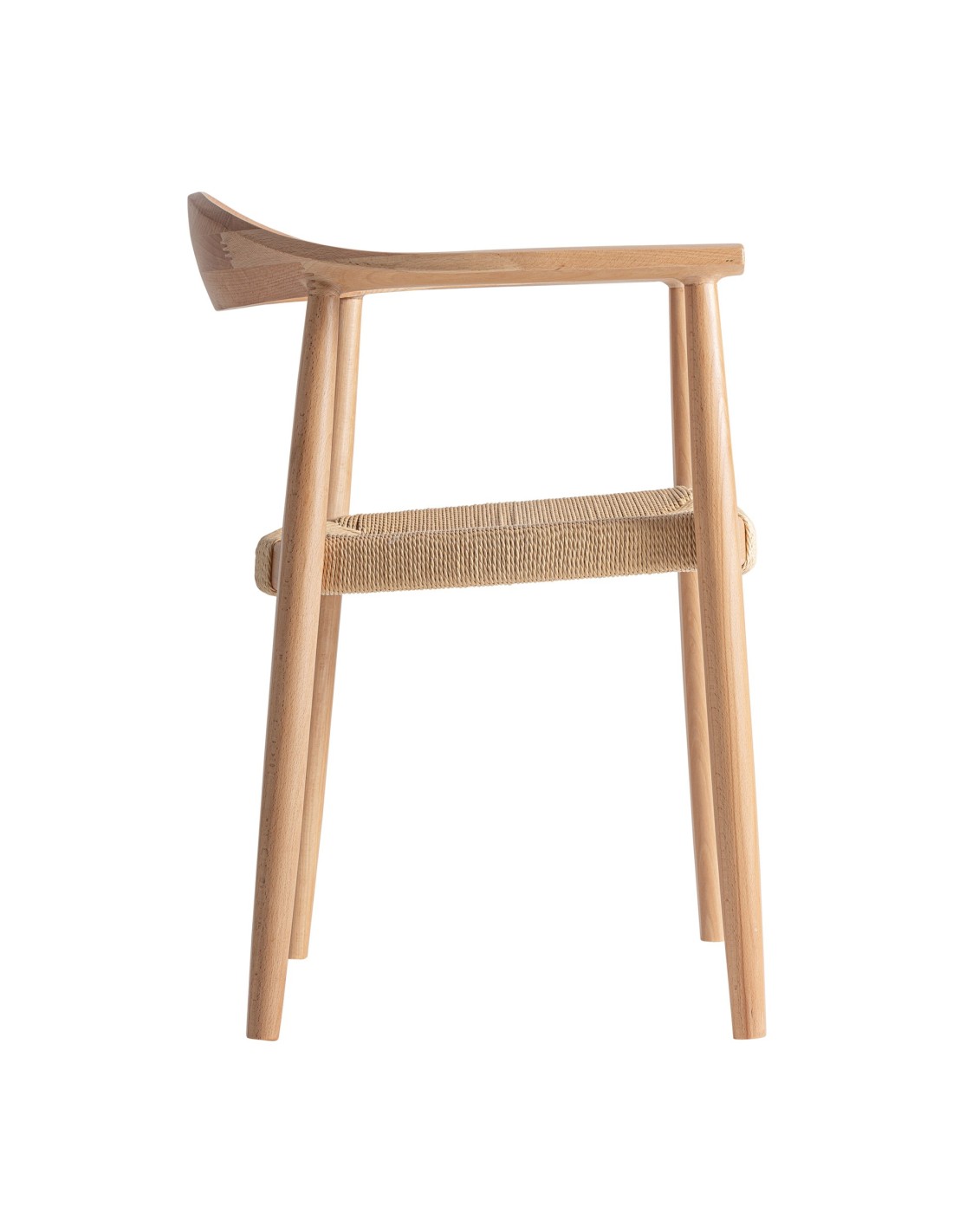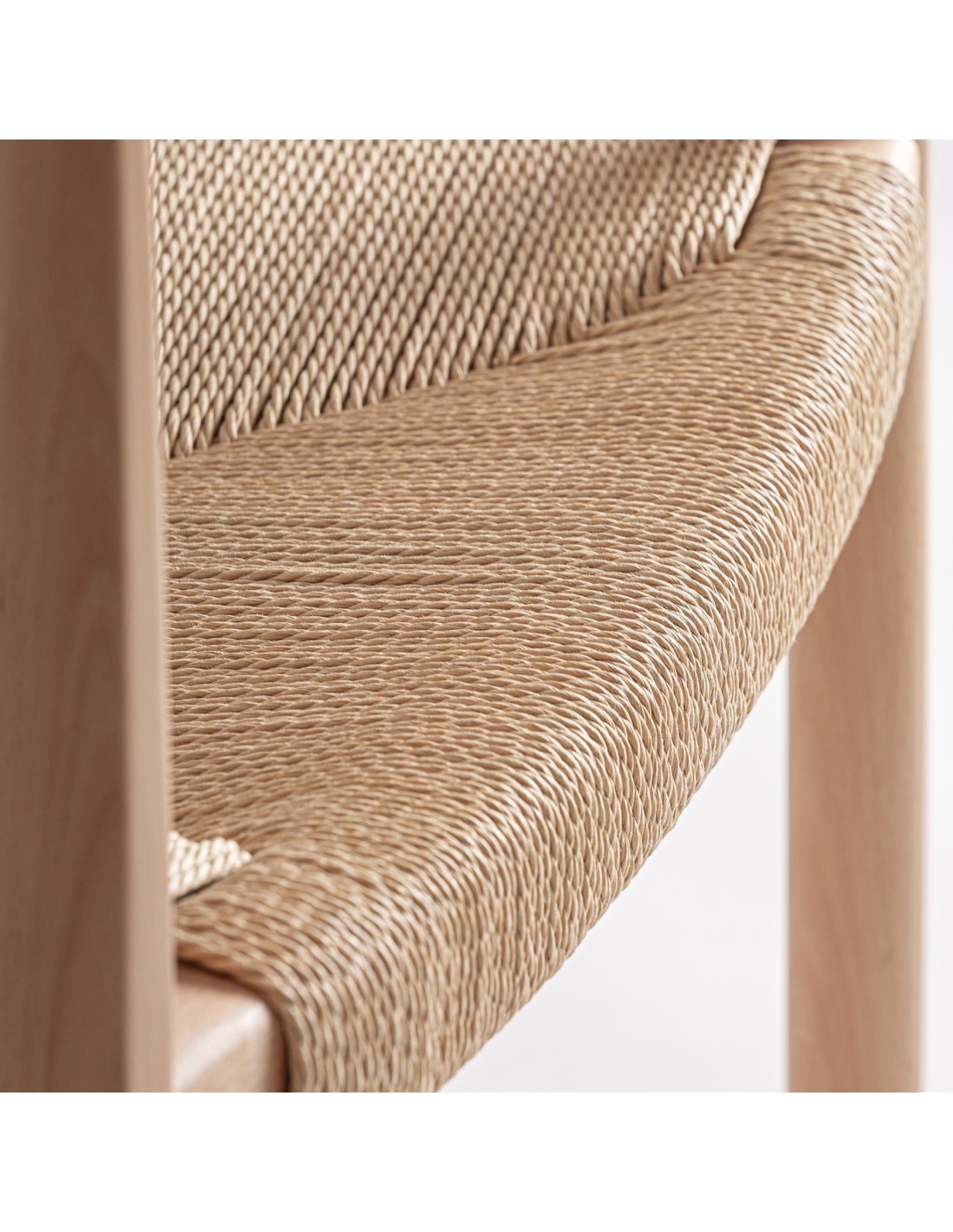 Silla Wieler de estilo Nórdico, fabricada en madera de haya en color marrón claro y cuerda en color beige.