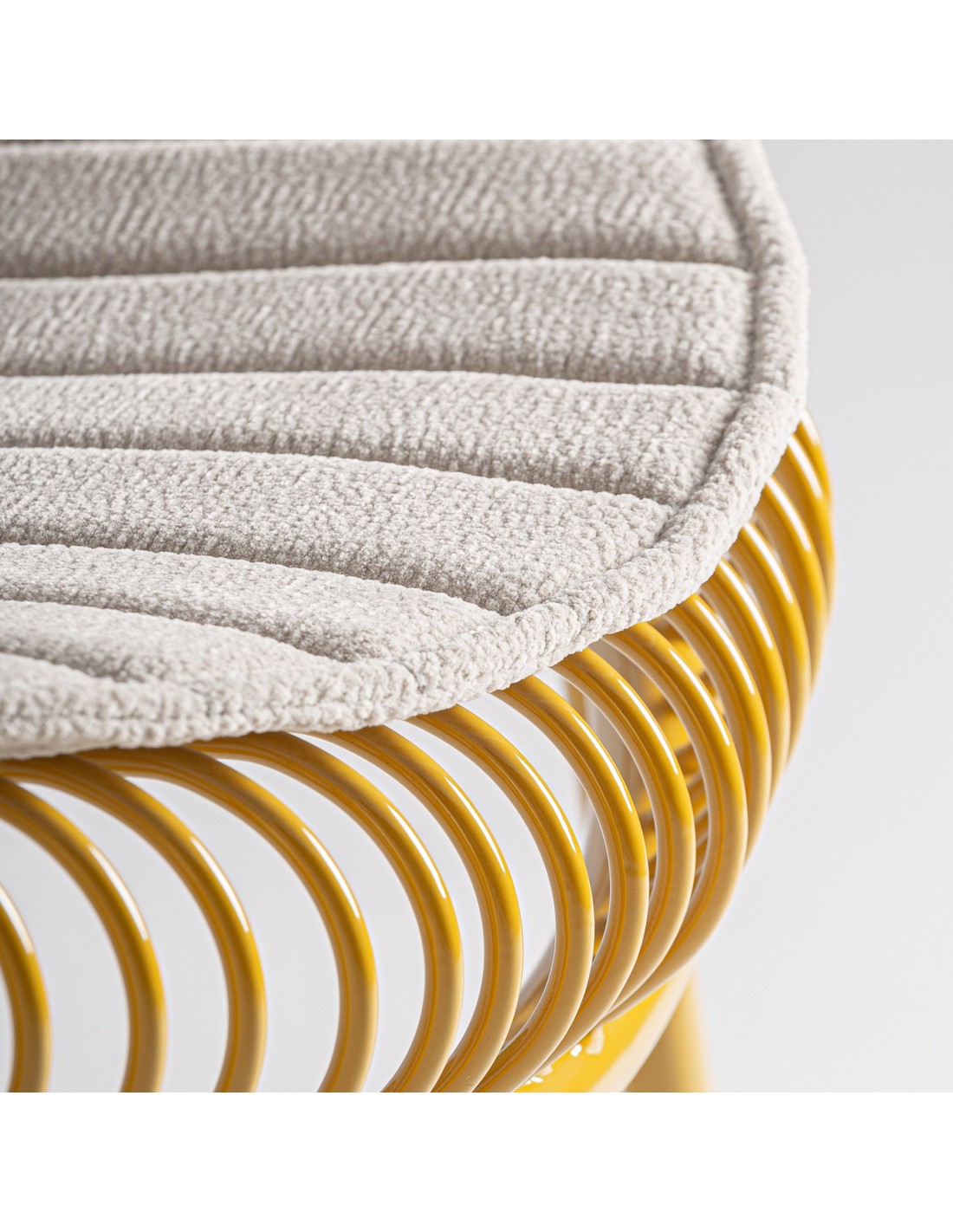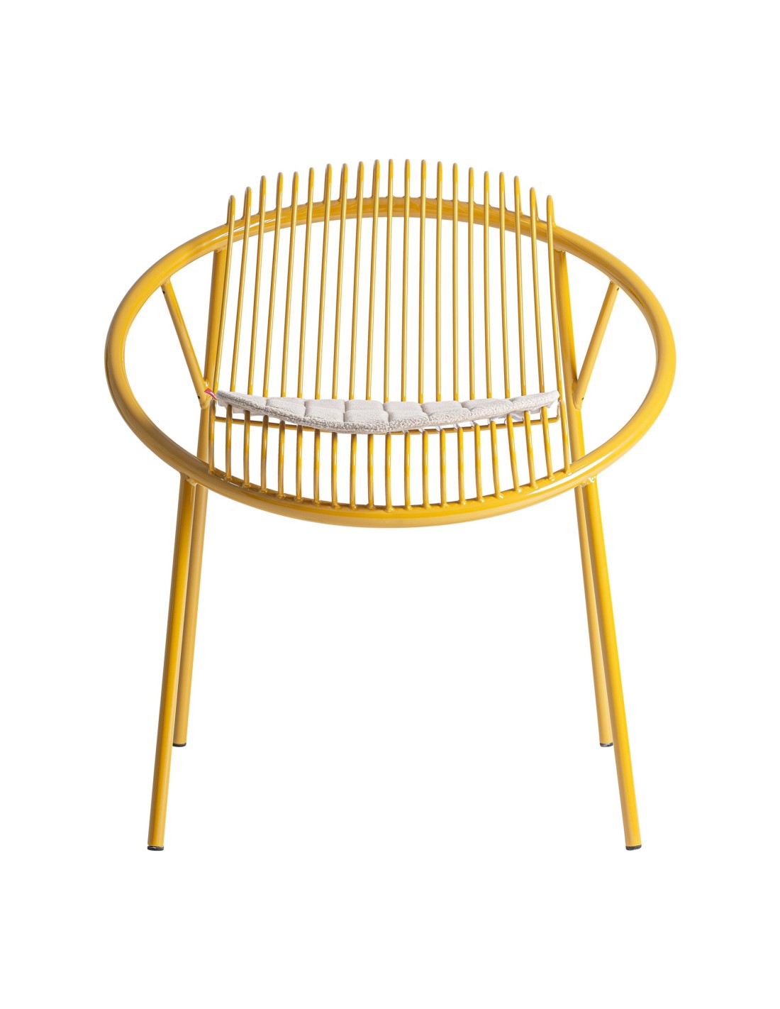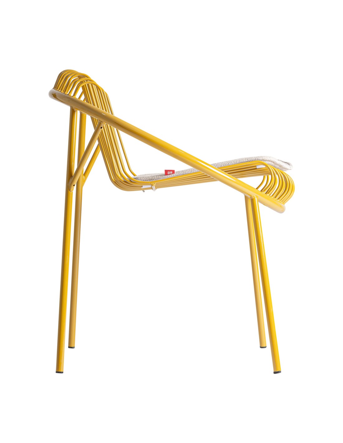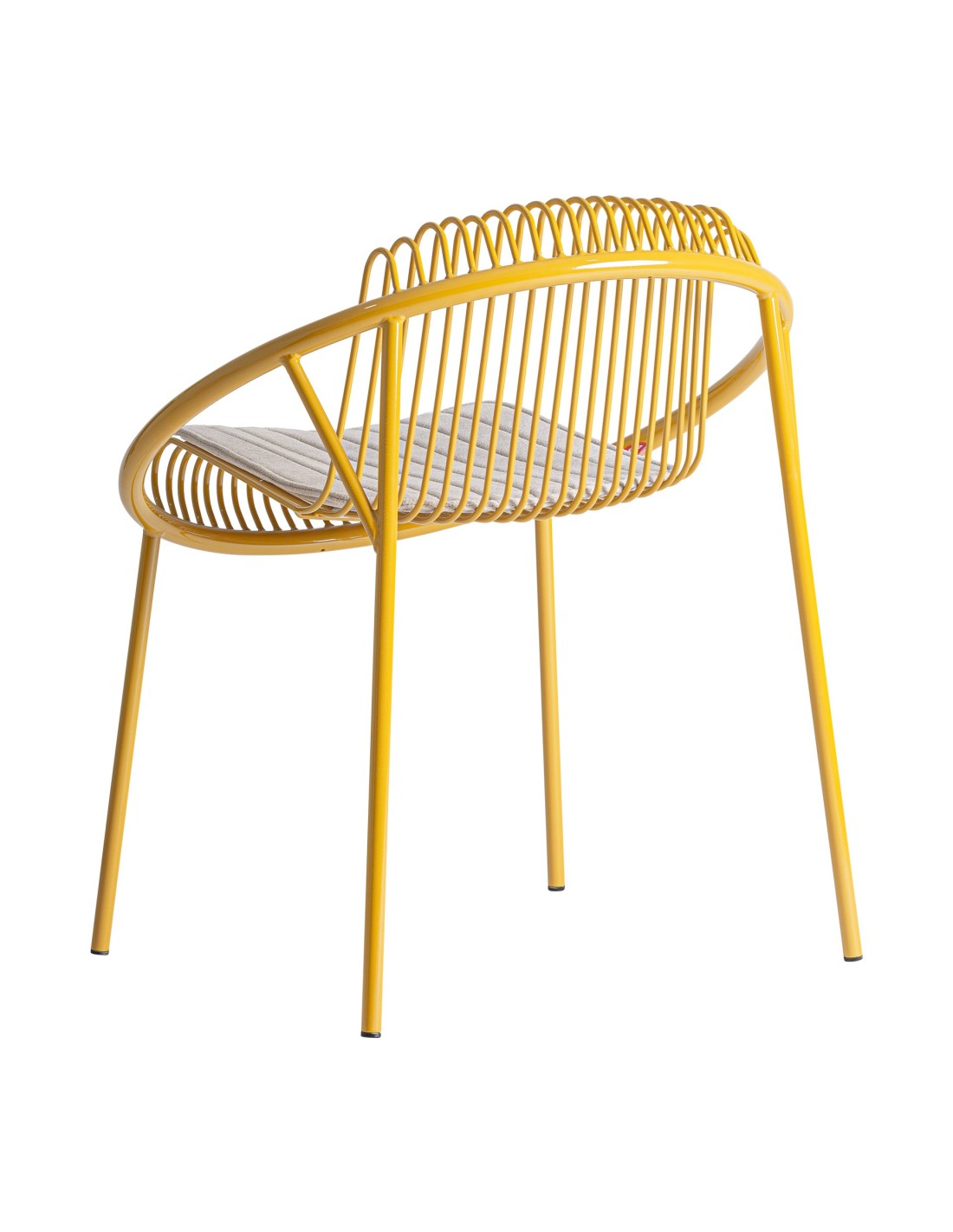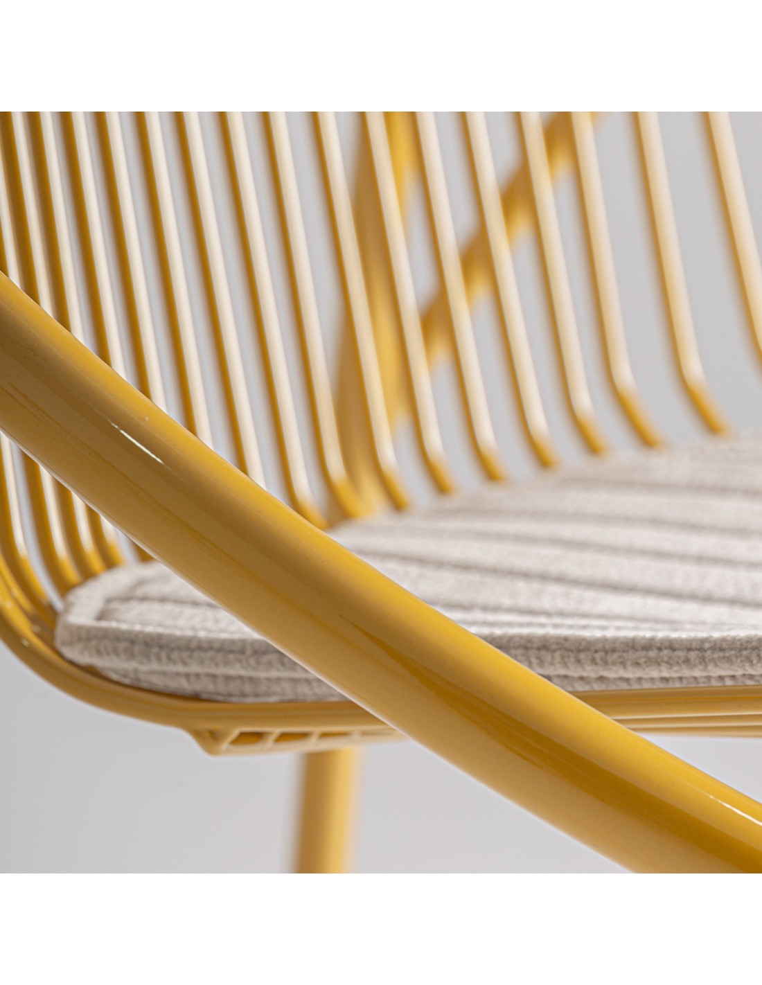 Silla Brienz de estilo Moderno, fabricada en hierro en color mostaza y poliéster en color gris. Tapiceria hidrófuga. Producto desmontable.