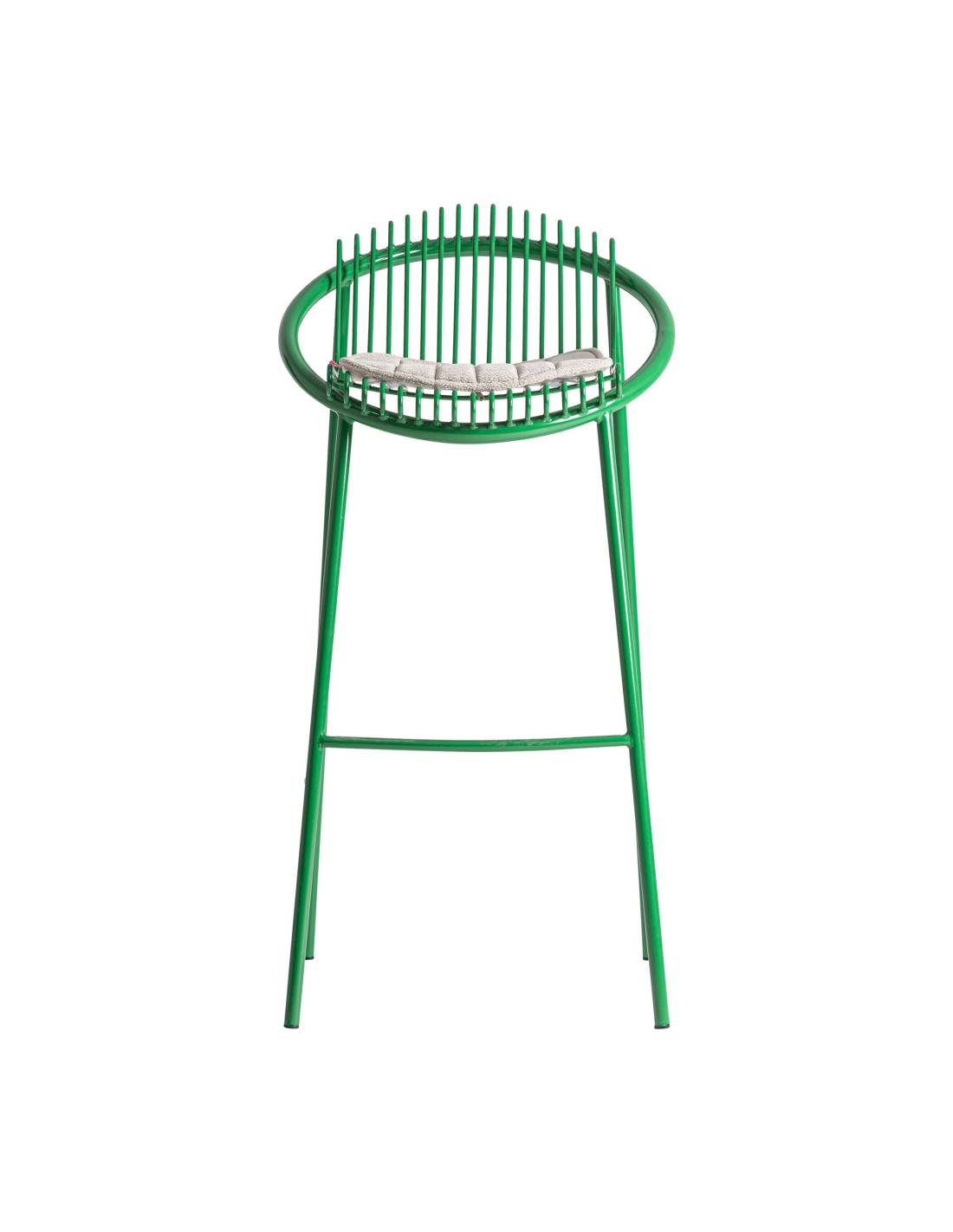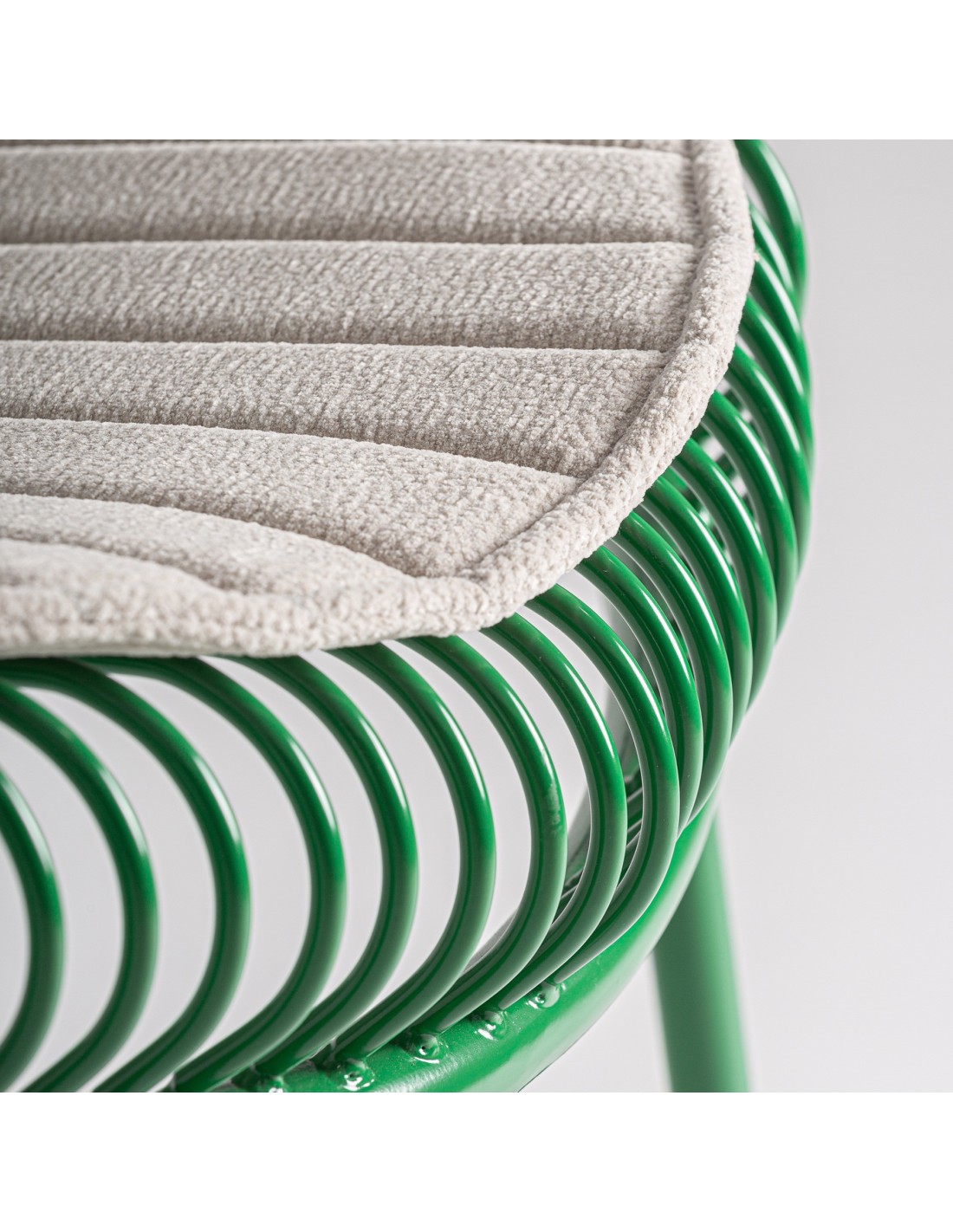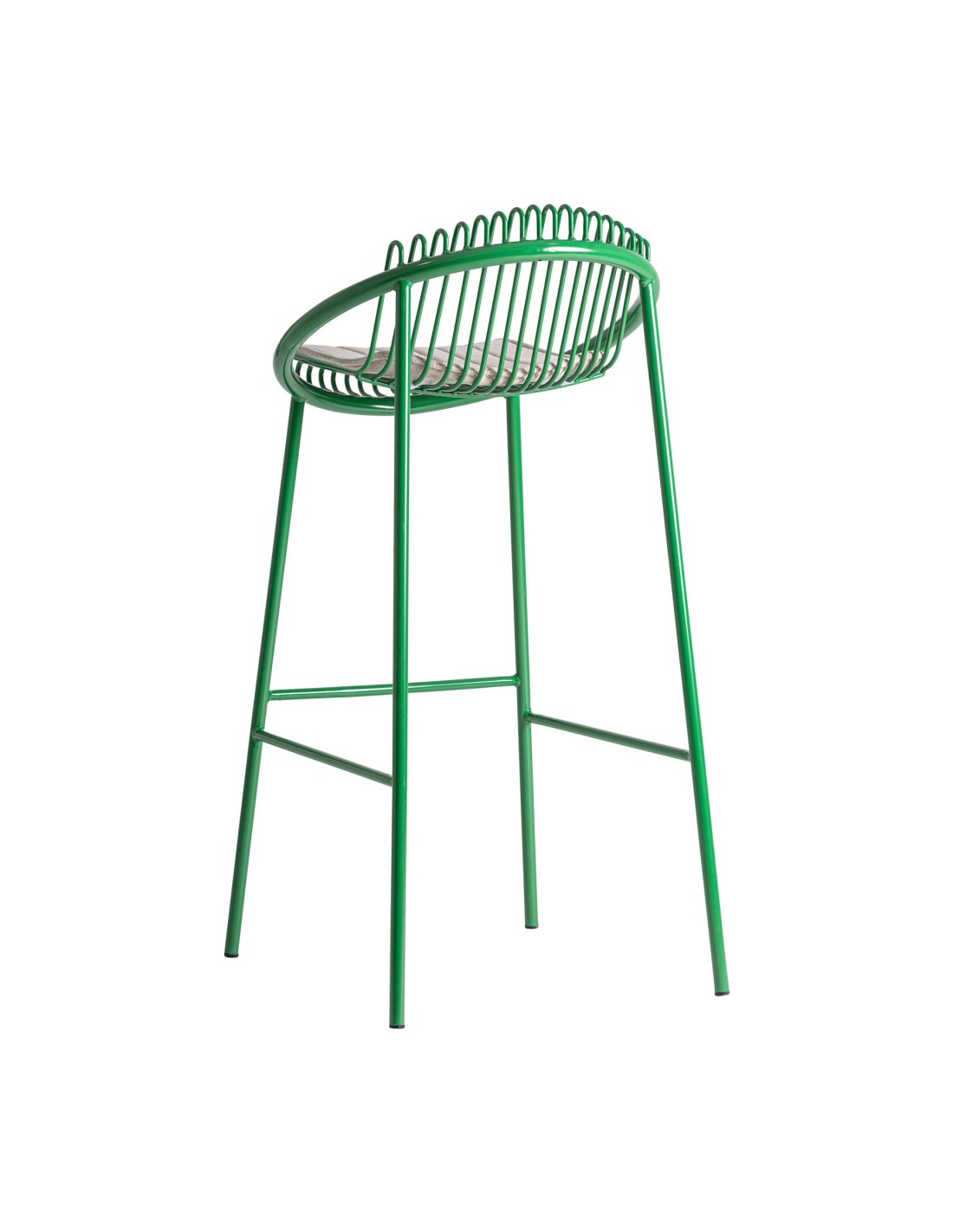 Taburete Brienz de estilo Contemporáneo, fabricado en hierro en color verde y poliéster en color gris. Tapiceria hidrófuga. Producto desmontable.