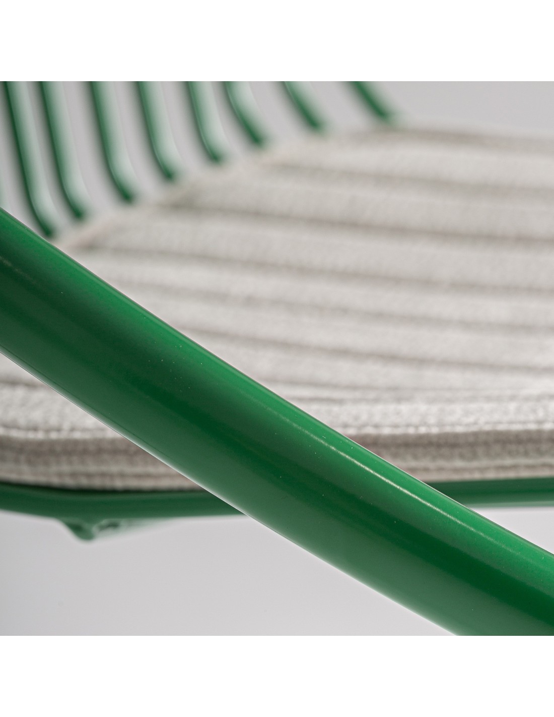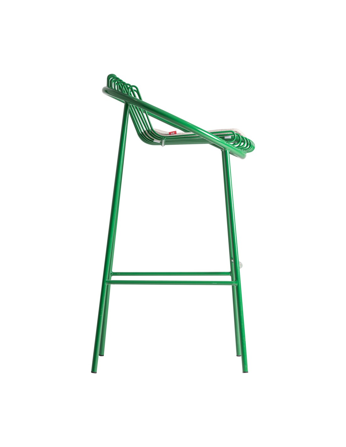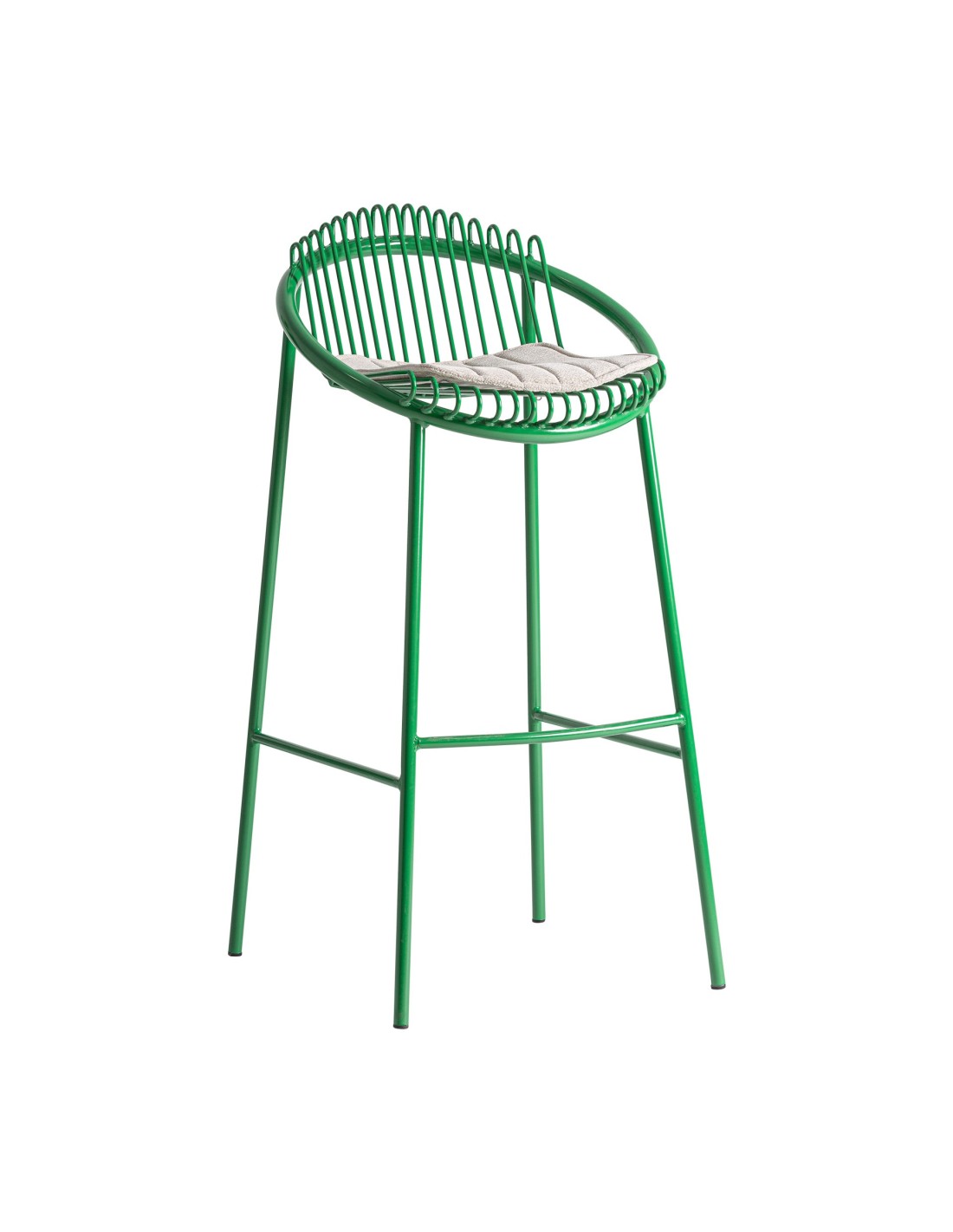 Taburete Brienz de estilo Contemporáneo, fabricado en hierro en color verde y poliéster en color gris. Tapiceria hidrófuga. Producto desmontable.