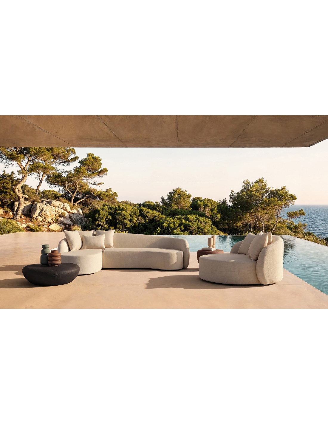 Sofá Vitznau de estilo Contemporáneo, fabricado en polipropileno en color beige y aluminio. Tapiceria hidrófuga. Producto desenfundable. Compatible con: 37703.
