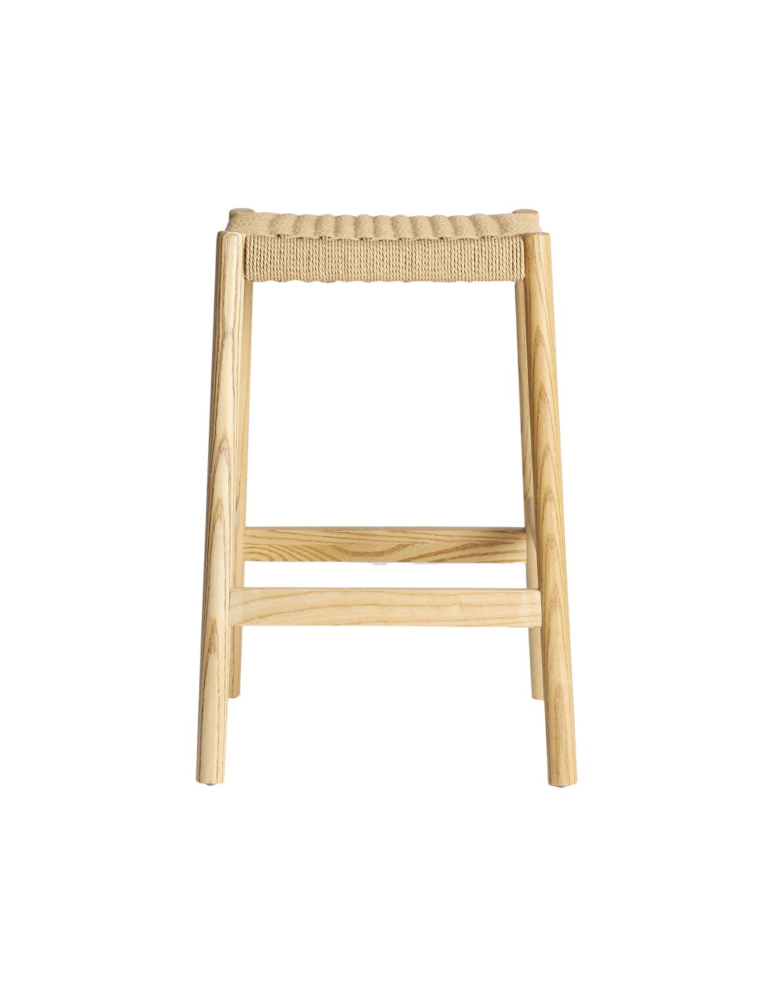 Taburete Valjea de estilo Colonial, fabricado en madera de olmo en color marrón claro.