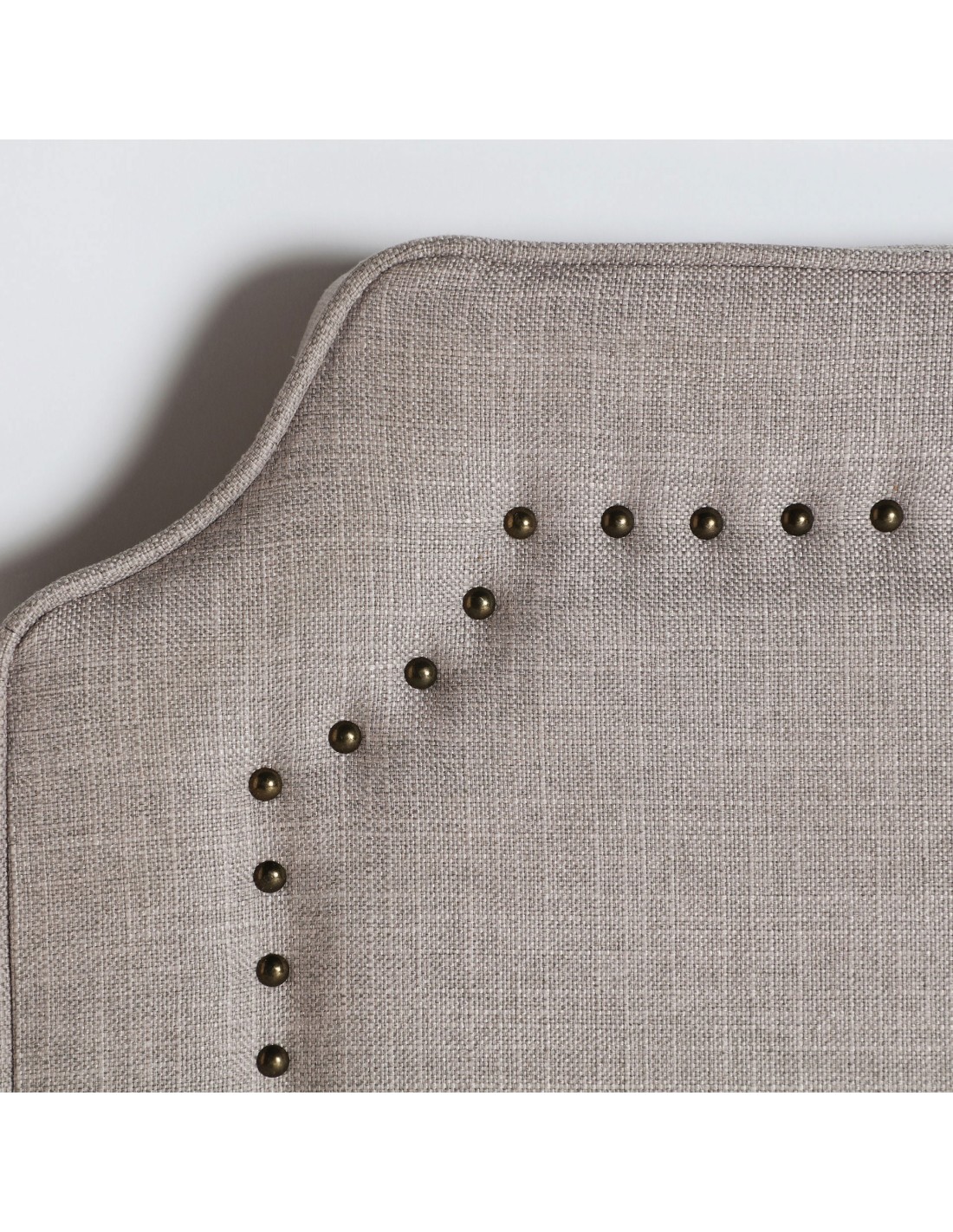 Cabecero de cama rectangular Sousel de estilo Colonial, fabricado en textil de lino en color beige, combinado con madera de pino y poliéster.
