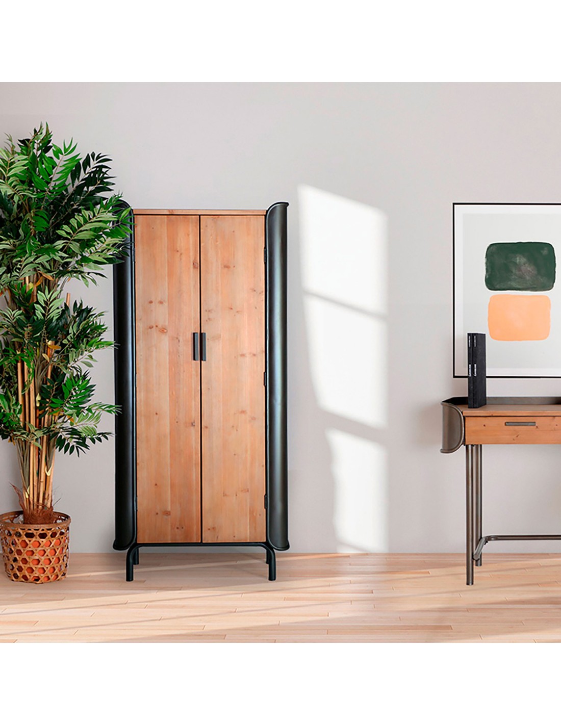 Armario BRIEC, Madera, Hierro / Marrón, Gris - Kodu Home Design