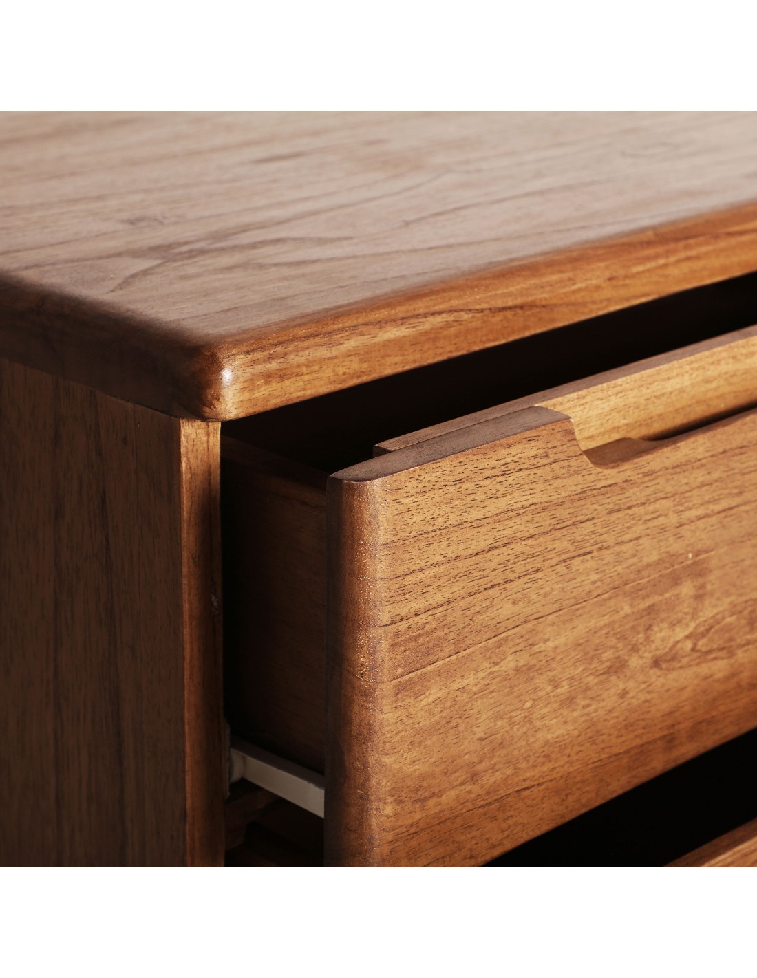 Cómoda rectangular Slough de estilo Nórdico, fabricada en madera de mindi en color marrón. Producto desmontable.