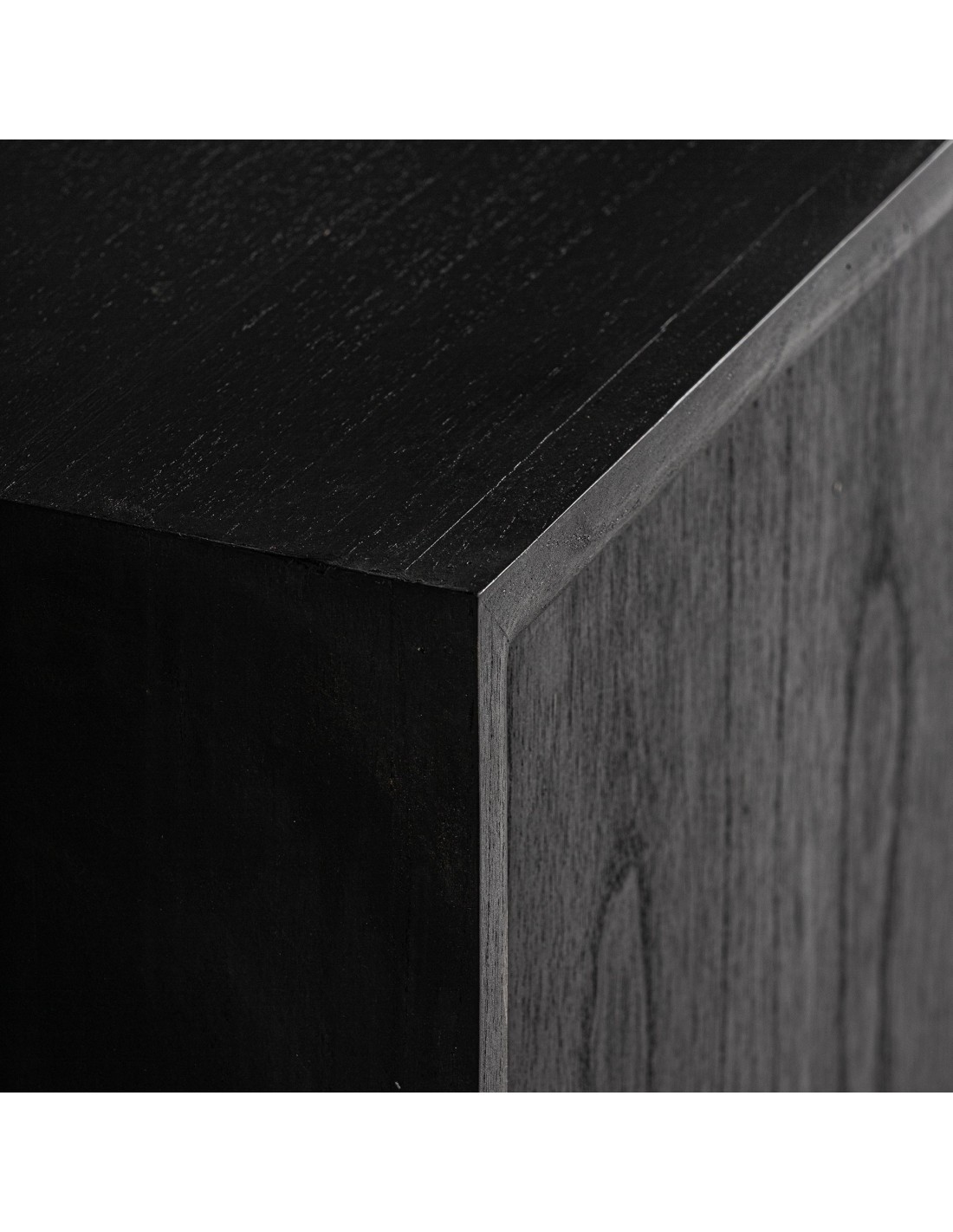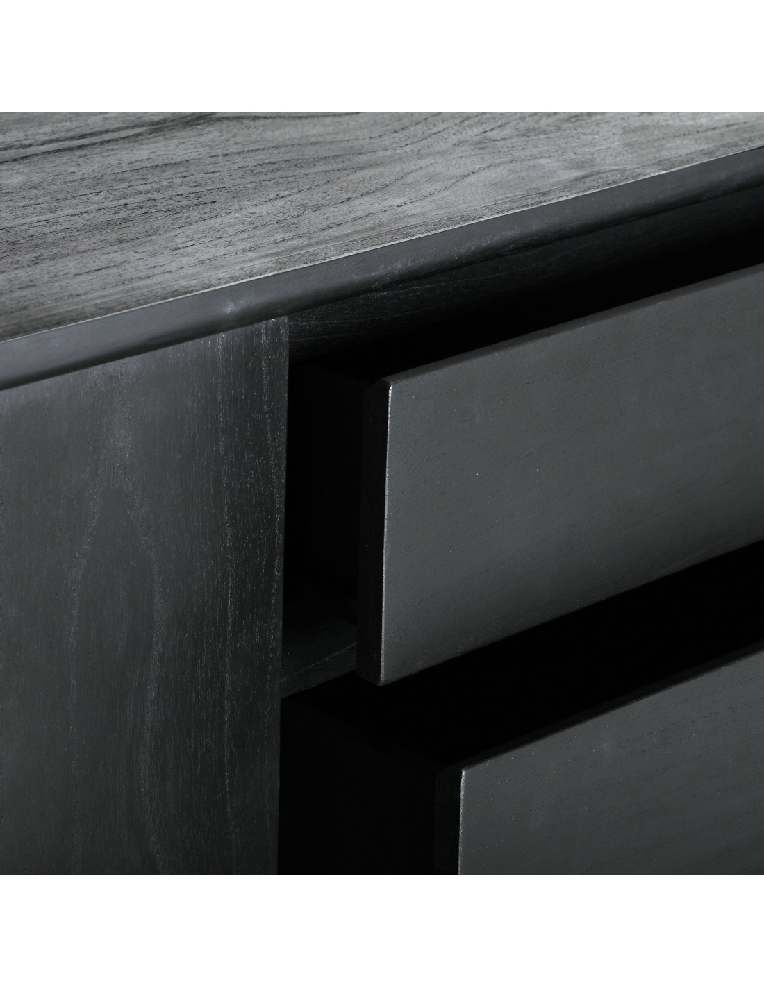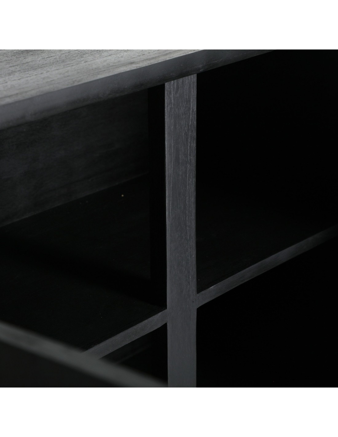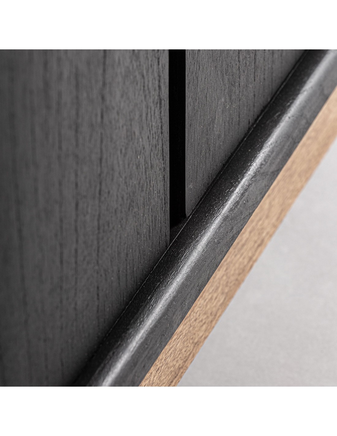 Aparador Thiers de estilo Nórdico, fabricado en madera de mindi en color negro y madera contrachapada en color marrón. Producto desmontable.