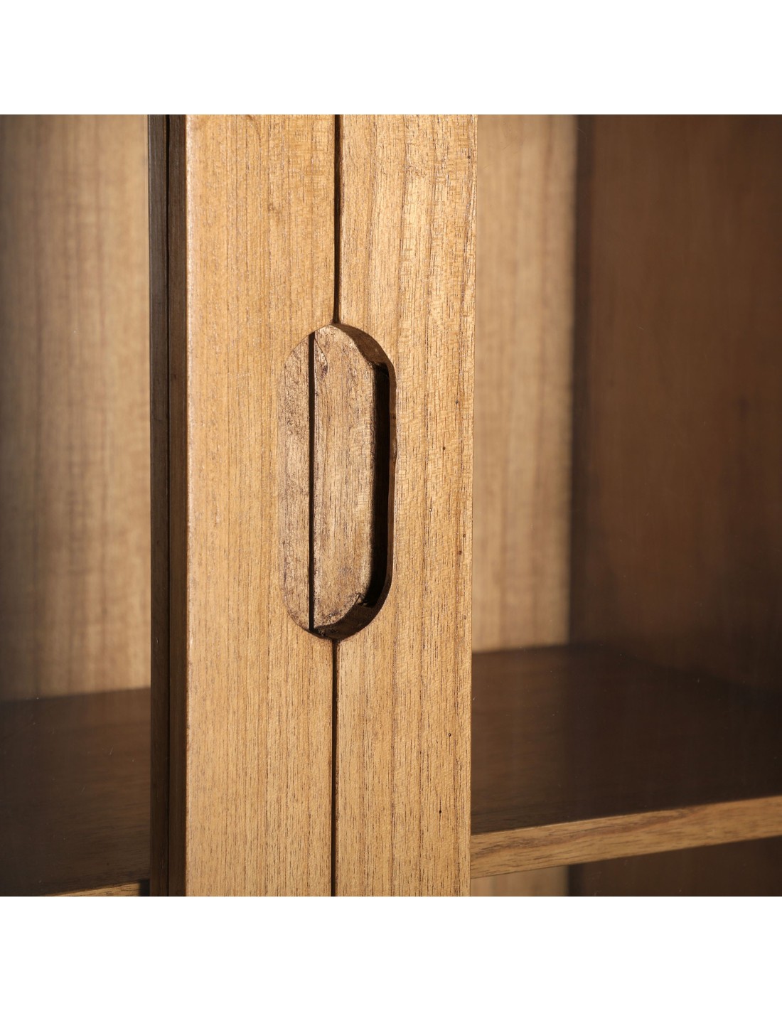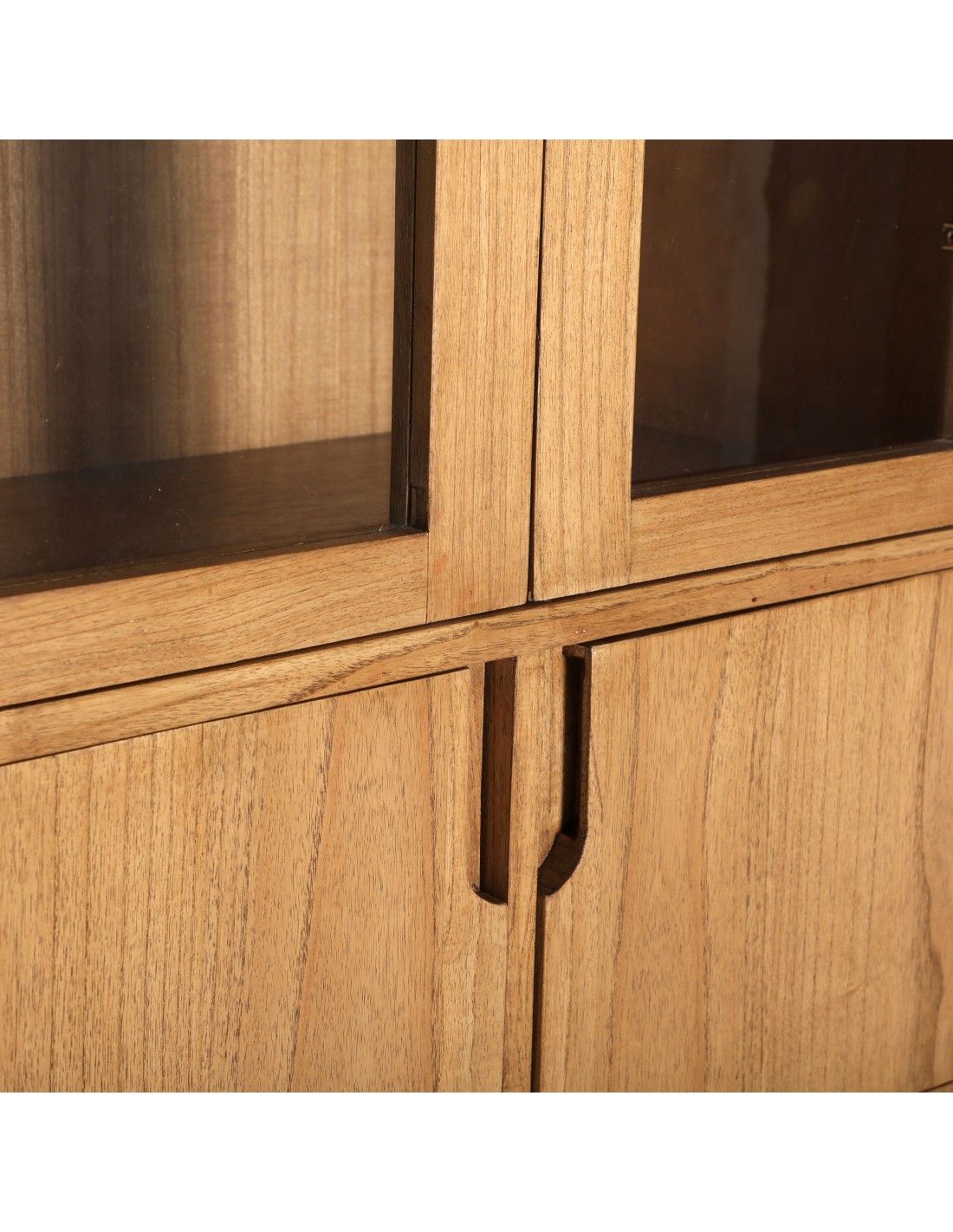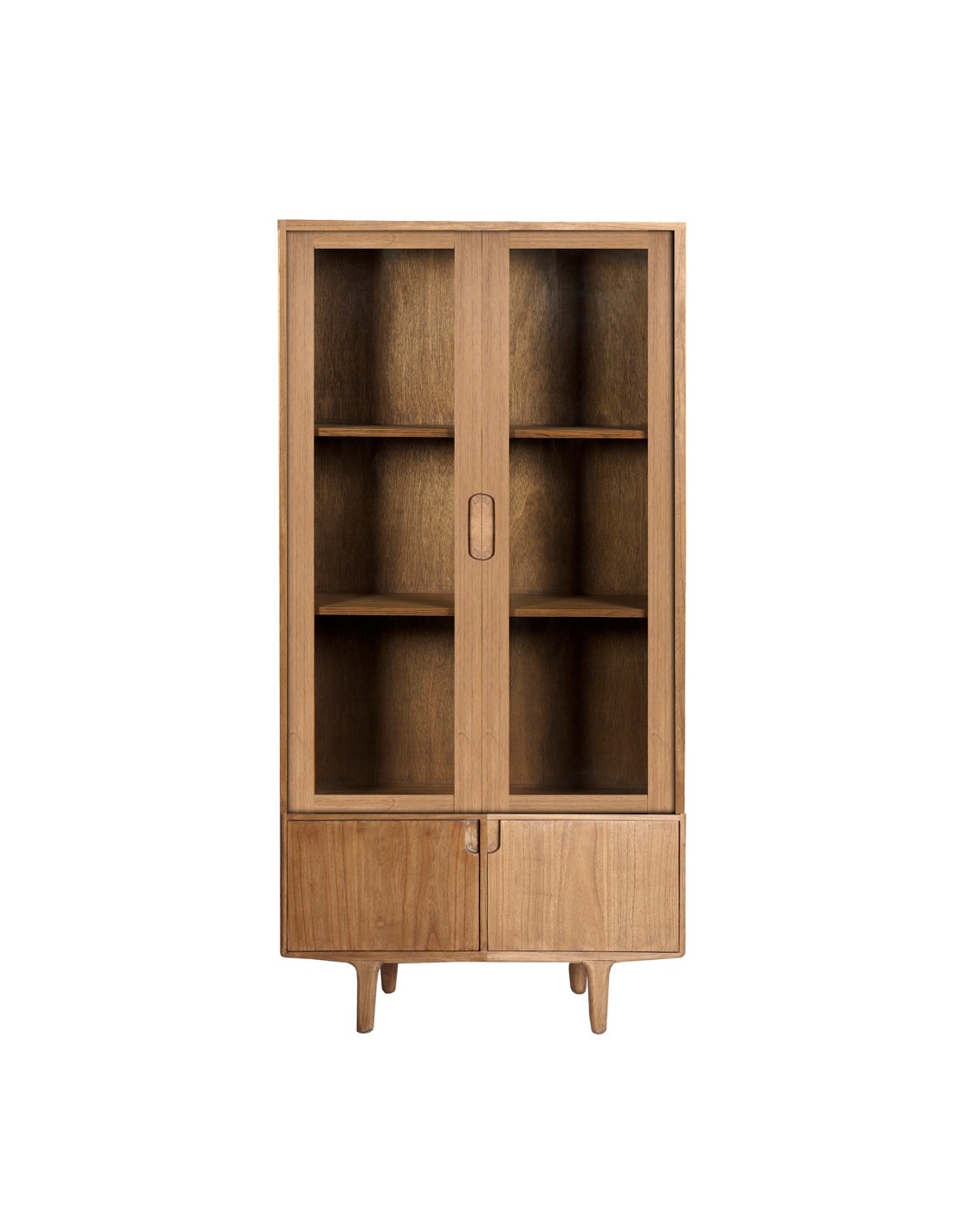 Vitrina Kamenz de estilo Nórdico, fabricada en madera de mindi en color marrón y madera contrachapada y cristal. Producto desmontable.