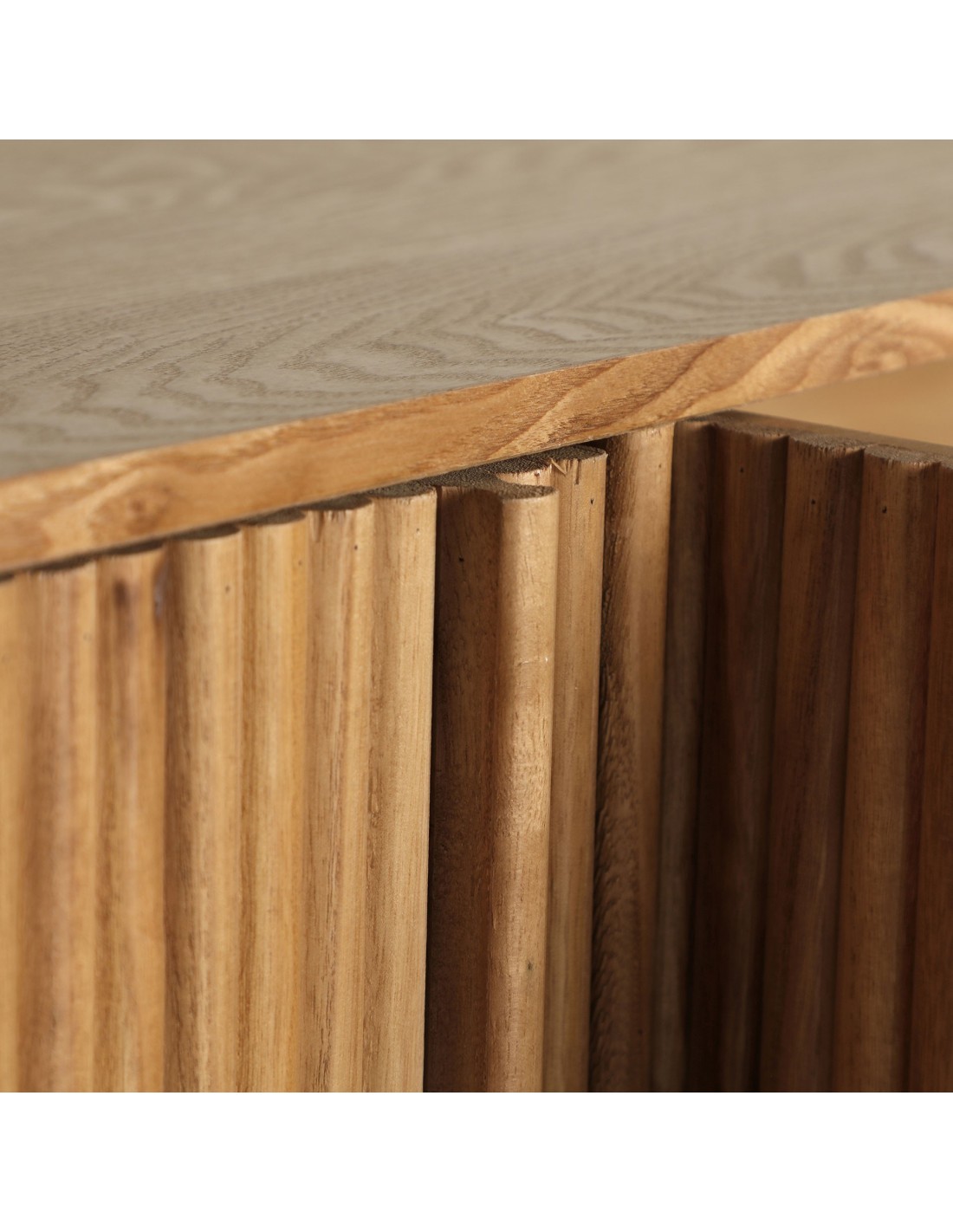 Mueble para TV Skagen de estilo Nórdico, fabricado en madera de paulonia en color marrón claro con acabado liso y DM.