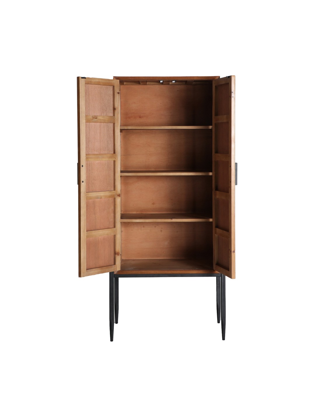 Armario rectangular Lauris de estilo Nórdico, fabricado en madera de abeto en color marrón y madera contrachapada y hierro en color negro con acabado mate.