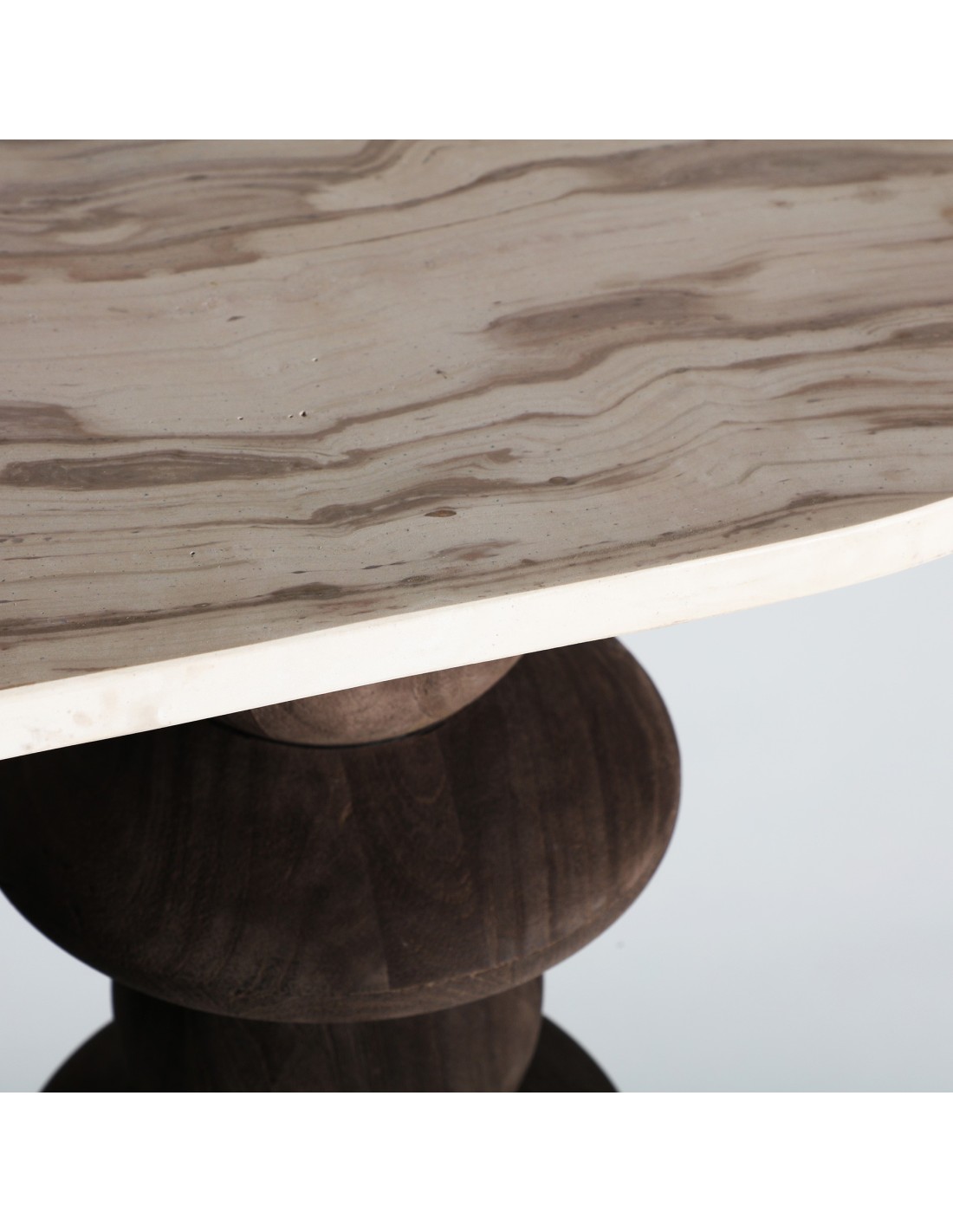 Consola oval Vrads de estilo Contemporáneo, fabricada en madera de mango en color marrón y mármol en color tonos en marrón.