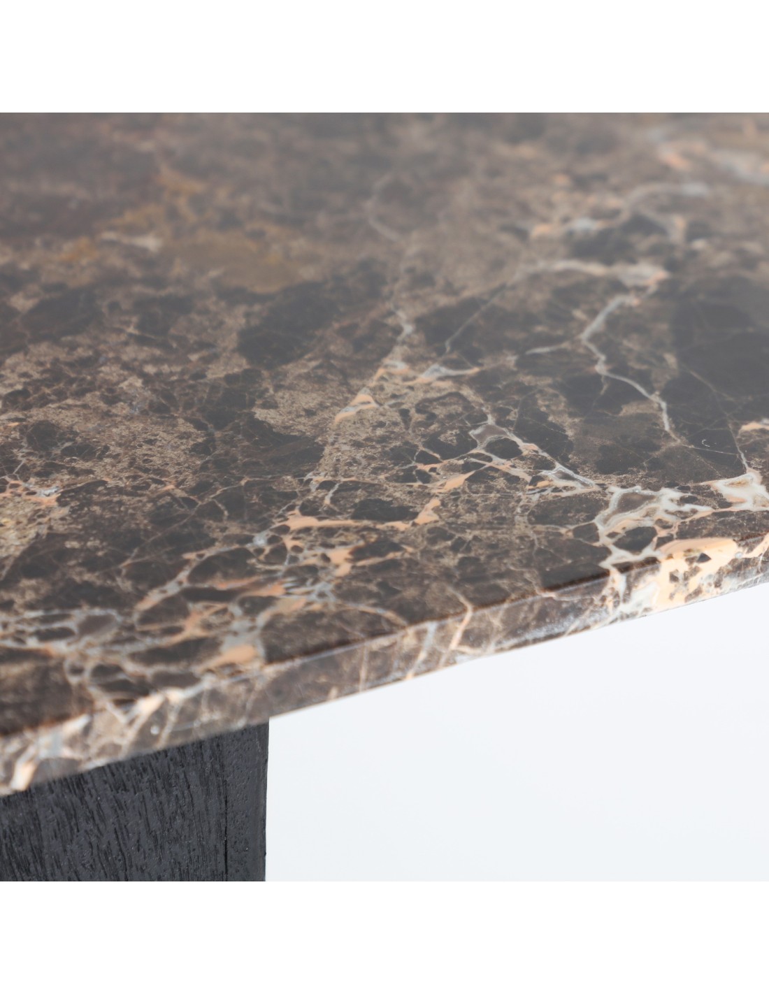 Consola Loop de estilo Contemporáneo, fabricada en madera de mango en color negra y mármol en color marrón con acabado veteado. Producto desmontable.