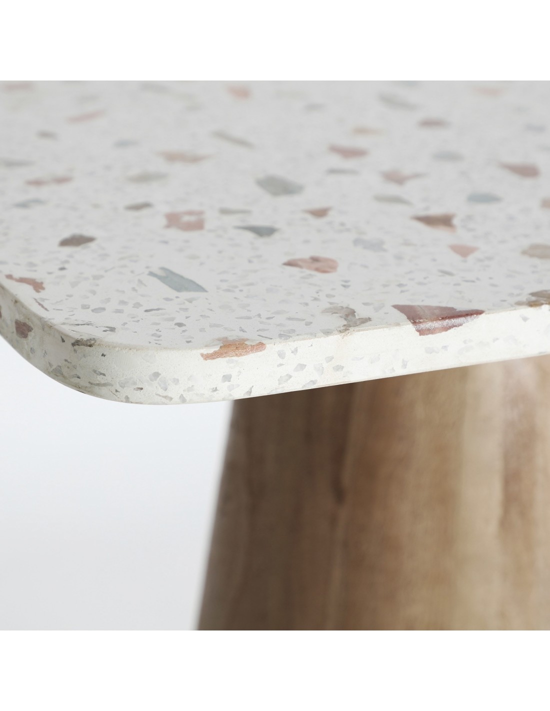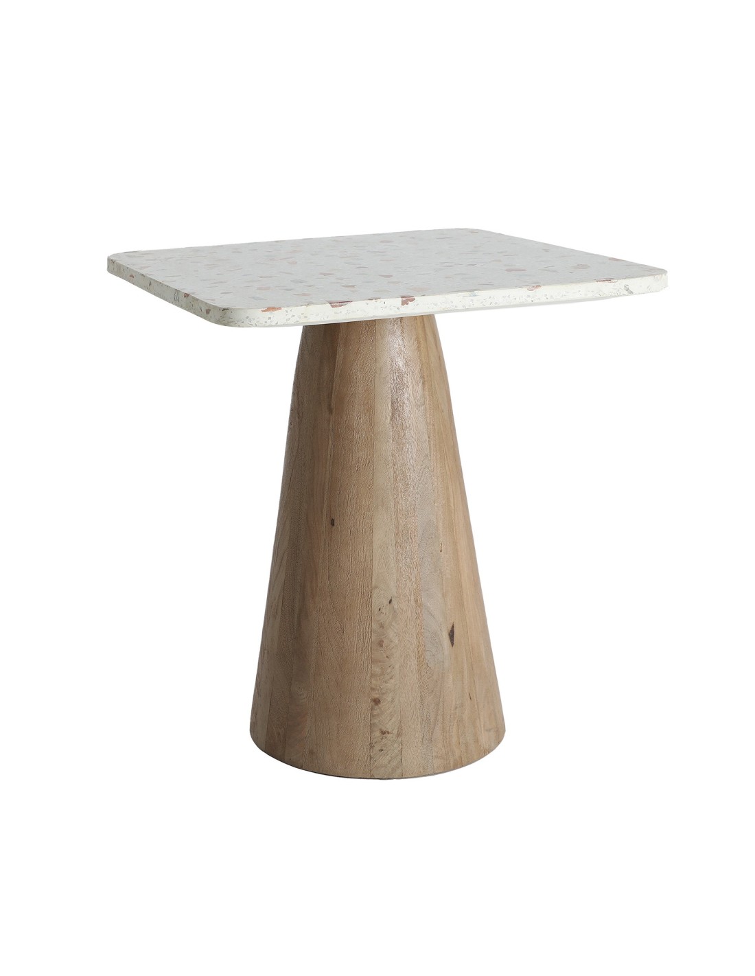 Mesa de Bar LAUTREC 70x70x75 cm, Terrazo, Madera de Mango / Blanco, Marrón - Kodu Home Design