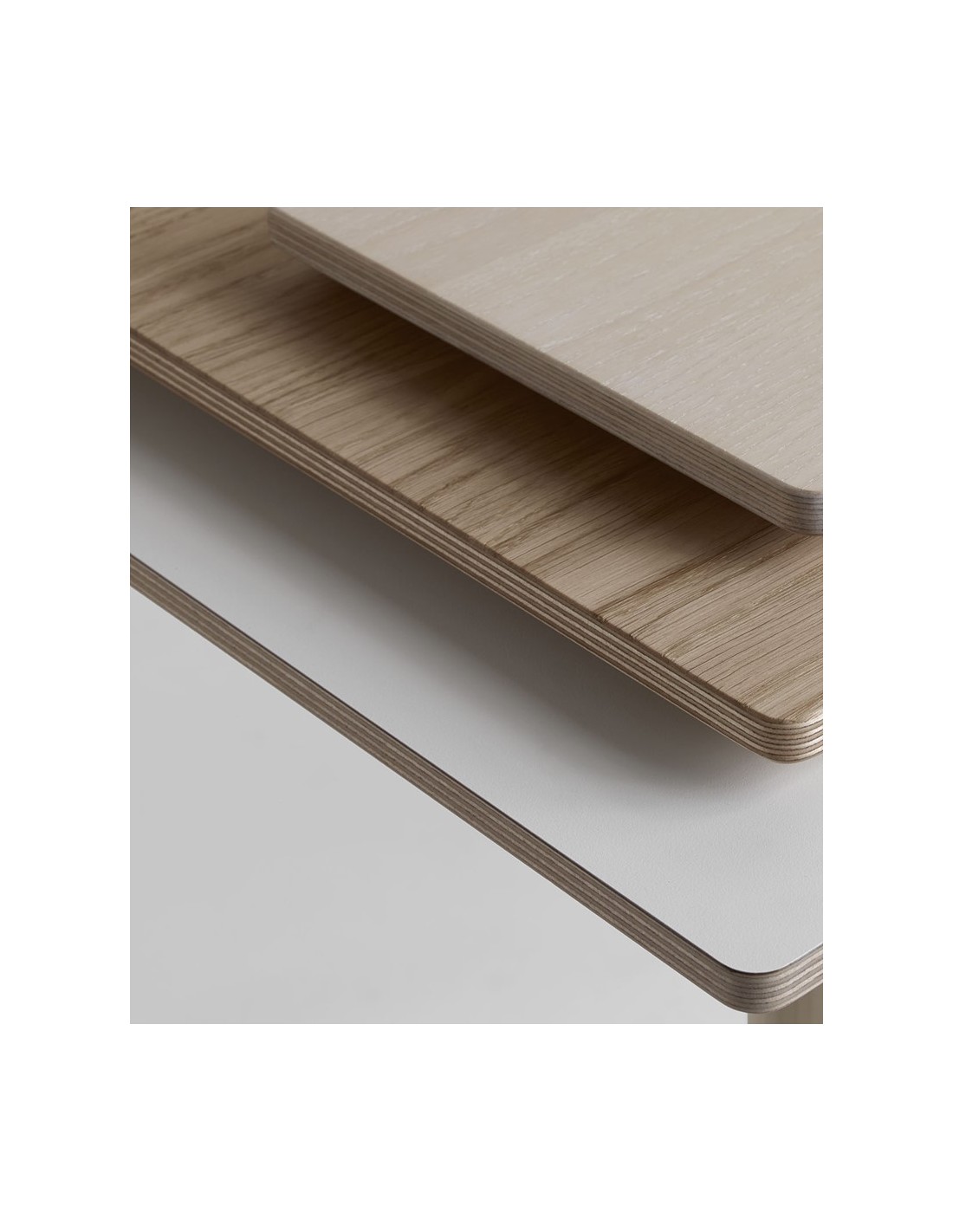 La colección de mesas John es una familia de mesas con columna de madera maciza y base redonda de metal, diseñada por Formforyou. El canto visto y biselado de contrachapado del tablero rectangular de 180x90 cm y sus dos bases redondas y elegantes en metal blanco (RAL 9003), le proporcionan una apariencia ligera y estilizada, al tiempo que se integra de forma armoniosa con el suelo. La mesa John es flexible y puede personalizarse en distintas alturas y colores, así como en especie de madera, dimensiones y materiales de superficie (linoleum, laminado HP, Fenix, Artigo Kayar, chapa de fresno o roble apta para reacondicionamiento.