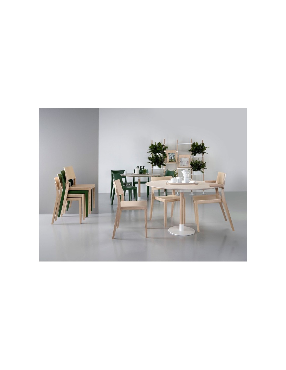 La colección de mesas John es una familia de mesas con columna de madera maciza y base redonda de metal, diseñada por Formforyou. El canto visto y biselado de contrachapado del tablero de Ø80 cm y su base redonda y elegante en metal blanco (RAL 9003), le proporcionan una apariencia ligera y estilizada, al tiempo que se integra de forma armoniosa con el suelo. La mesa John es flexible y puede personalizarse en distintas alturas y colores, así como en especie de madera, dimensiones y materiales de superficie (linoleum, laminado HP, Fenix, Artigo Kayar, chapa de fresno o roble apta para reacondicionamiento.