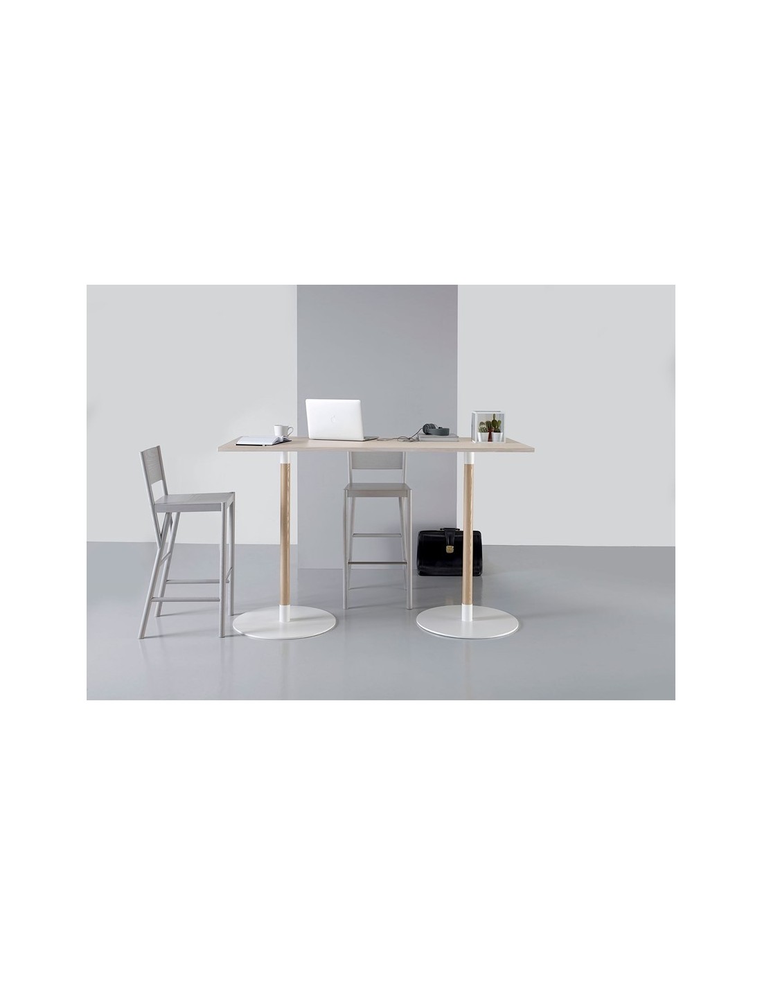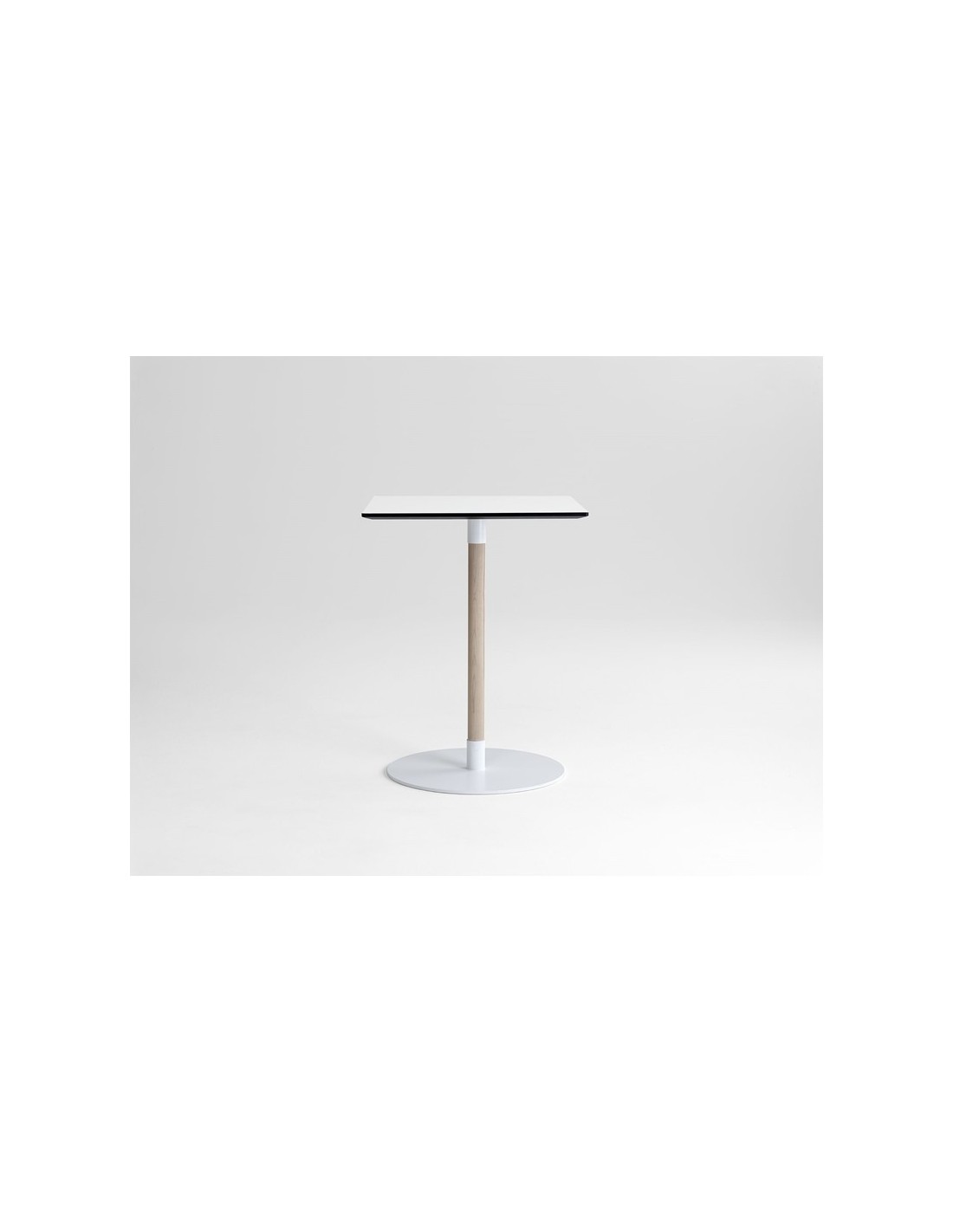La colección de mesas John es una familia de mesas con columna de madera maciza y base redonda de metal, diseñada por Formforyou. El canto visto y biselado de contrachapado del tablero cuadrado de 70x70 cm y su base redonda y elegante en metal blanco (RAL 9003), le proporcionan una apariencia ligera y estilizada, al tiempo que se integra de forma armoniosa con el suelo. La mesa John es flexible y puede personalizarse en distintas alturas y colores, así como en especie de madera, dimensiones y materiales de superficie (linoleum, laminado HP, Fenix, Artigo Kayar, chapa de fresno o roble apta para reacondicionamiento.