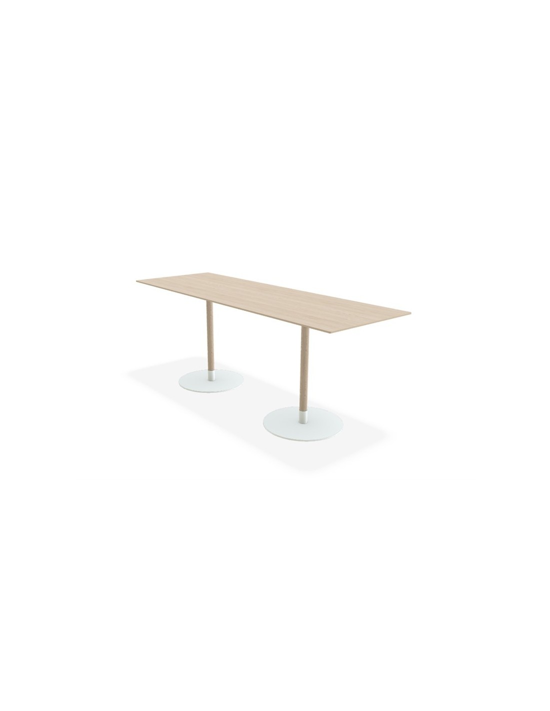 La colección de mesas John es una familia de mesas con columna de madera maciza y base redonda de metal, diseñada por Formforyou. El canto visto y biselado de contrachapado del tablero rectangular de 140x80 cm y sus dos bases redondas y elegantes en metal blanco (RAL 9003), le proporcionan una apariencia ligera y estilizada, al tiempo que se integra de forma armoniosa con el suelo. La mesa John es flexible y puede personalizarse en distintas alturas y colores, así como en especie de madera, dimensiones y materiales de superficie (linoleum, laminado HP, Fenix, Artigo Kayar, chapa de fresno o roble apta para reacondicionamiento.
