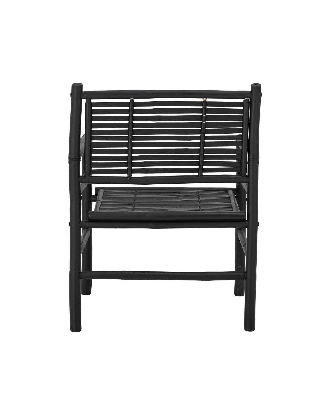 Sillón elaborado 100% en madera de bambú acabado pintura negra. Es ideal para añadir un toque rústico y natural al ambiente de cualquier espacio interior. Úsalo en conjunto con un cojín o una piel. Una pieza exclusiva del diseño escandinavo de Bloomingville.