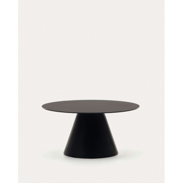 Mesa de centro Wilshire de cristal templado y metal con acabado pintado negro mate Ø 80 cm - Kave Home