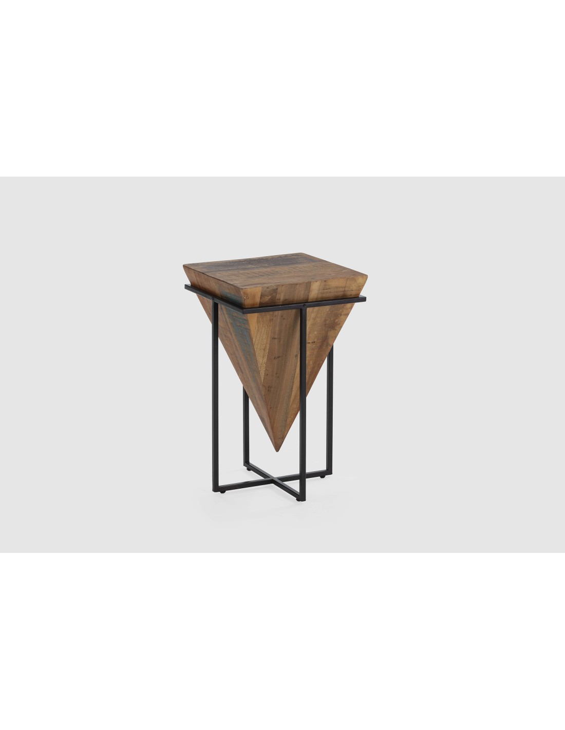 Mesa auxiliar con marco en metal y sobre con forma de pirámide invertida, elaborado en madera maciza proveniente de la lndia.