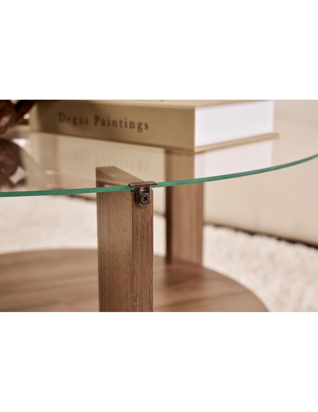Mesa de Centro RITA, MDF Acabado Nogal / Cristal Transparente
