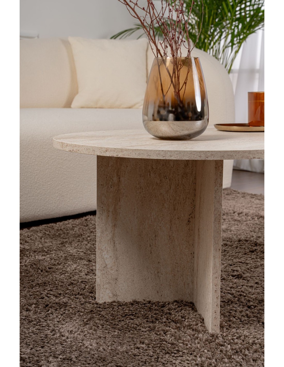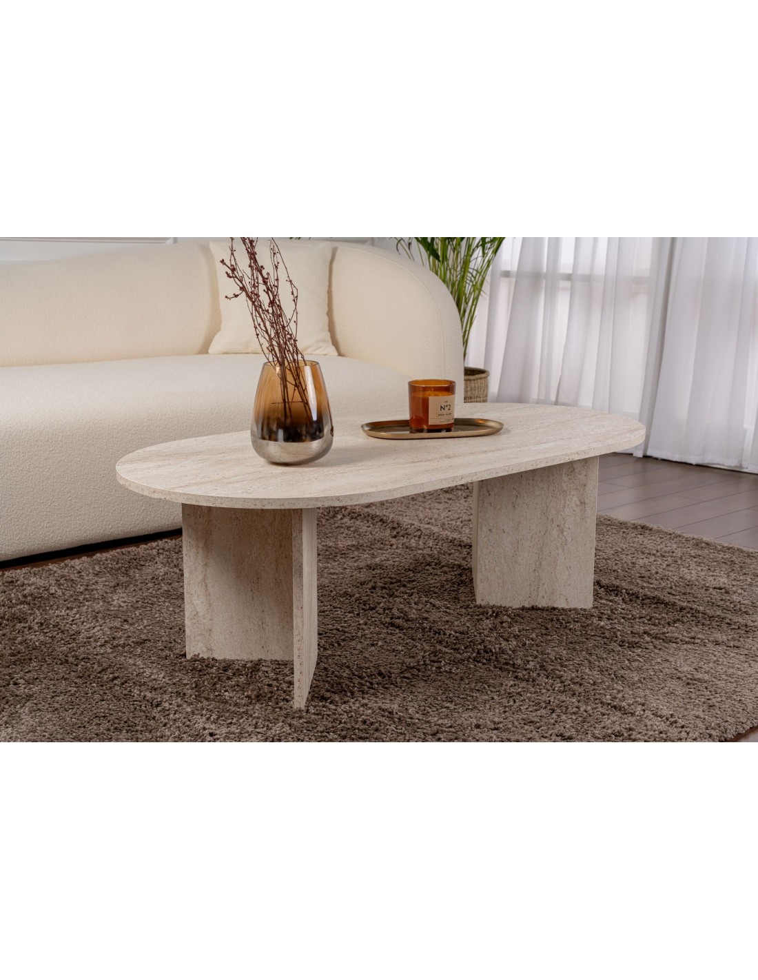 Gracias a sus generosas dimensiones, esta mesa ofrece mucho espacio para tus bebidas, bocadillos y elementos decorativos. El color travertino añade un toque de elegancia y riqueza al ambiente, convirtiéndola en el centro de atención perfecto para tu sala de estar.