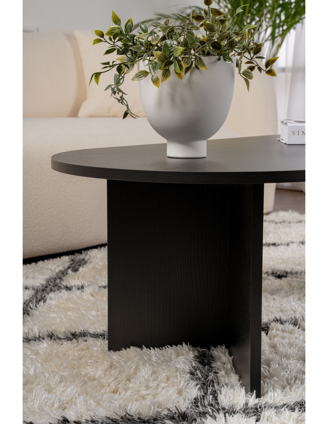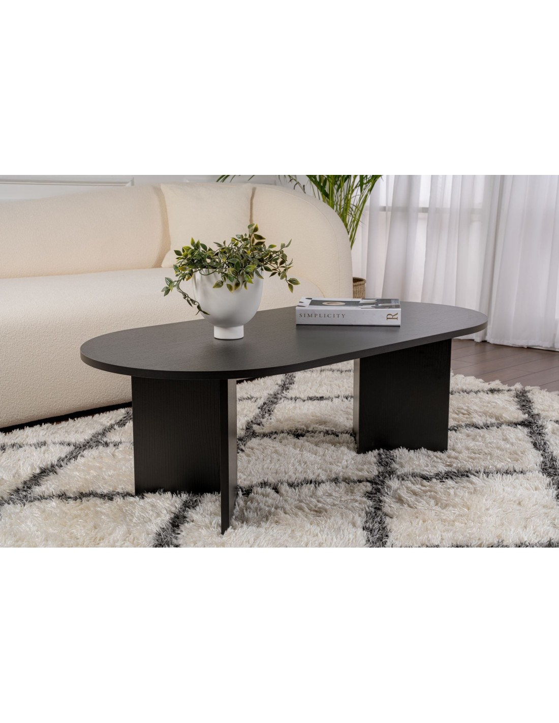 Mesa de Centro Ovalada SILKE, MDF Acabado Madera Negra