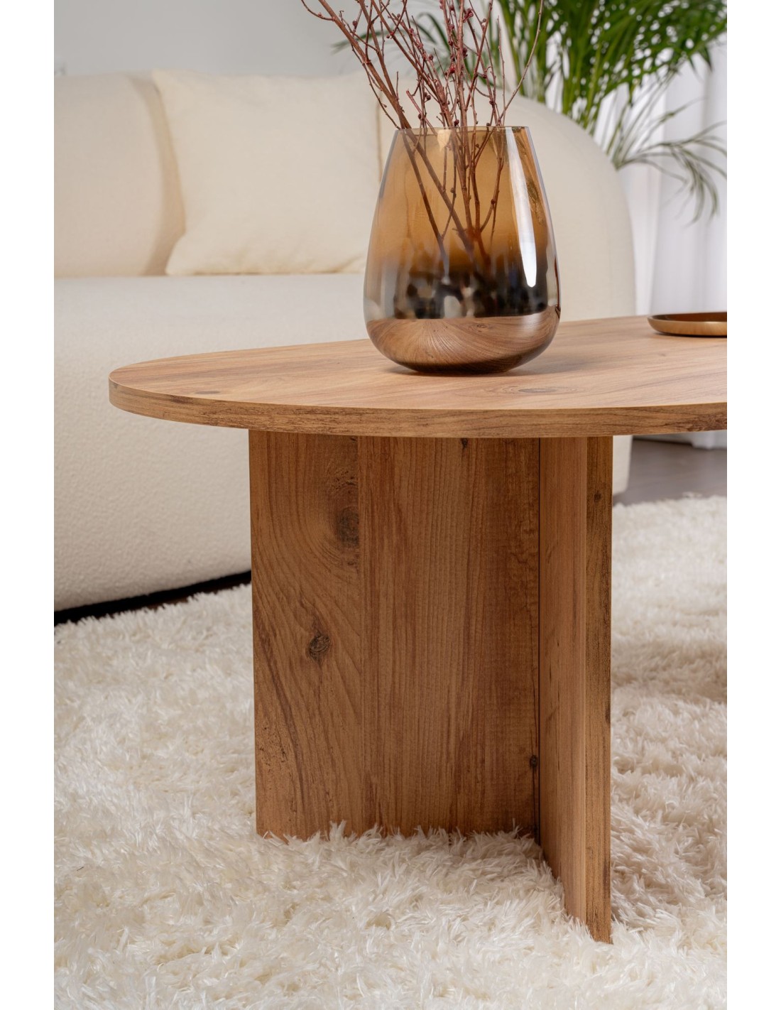 Mesa de Centro Ovalada SILKE, MDF Acabado Pino Atlántico