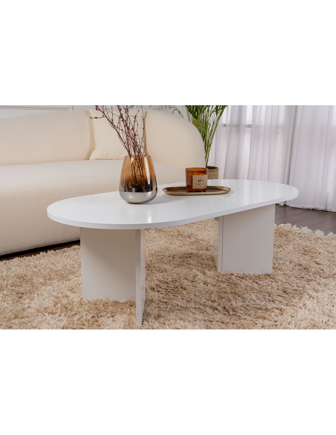 Mesa de Centro Ovalada SILKE, MDF Acabado Blanco