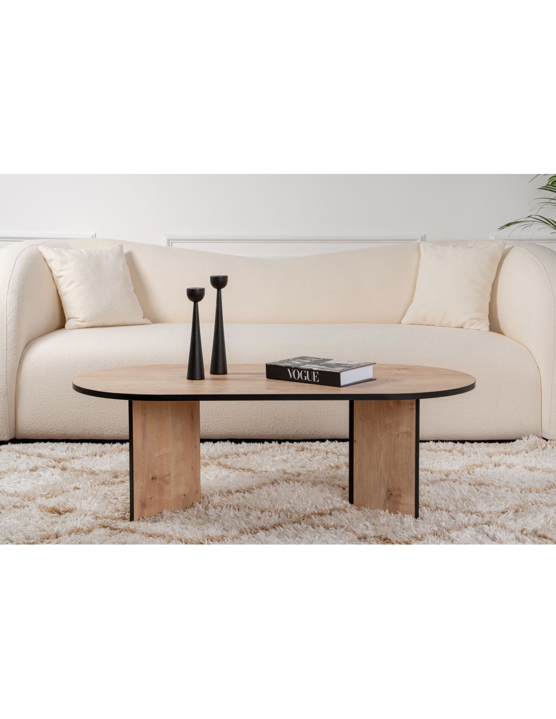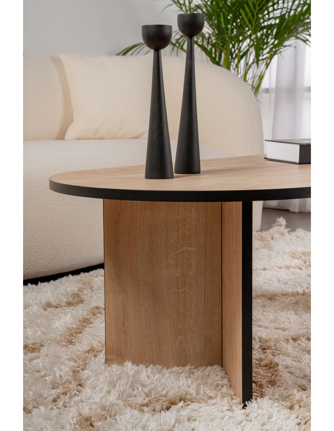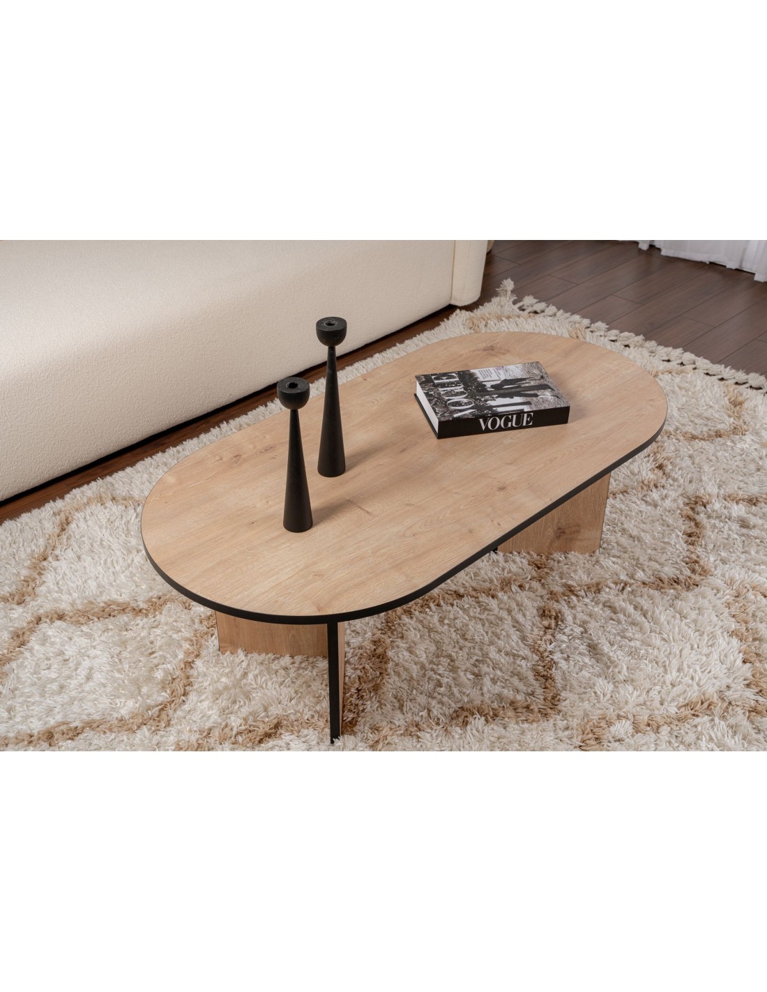 Mesa de Centro Ovalada SILKE, MDF Acabado Roble Zafiro / Negro