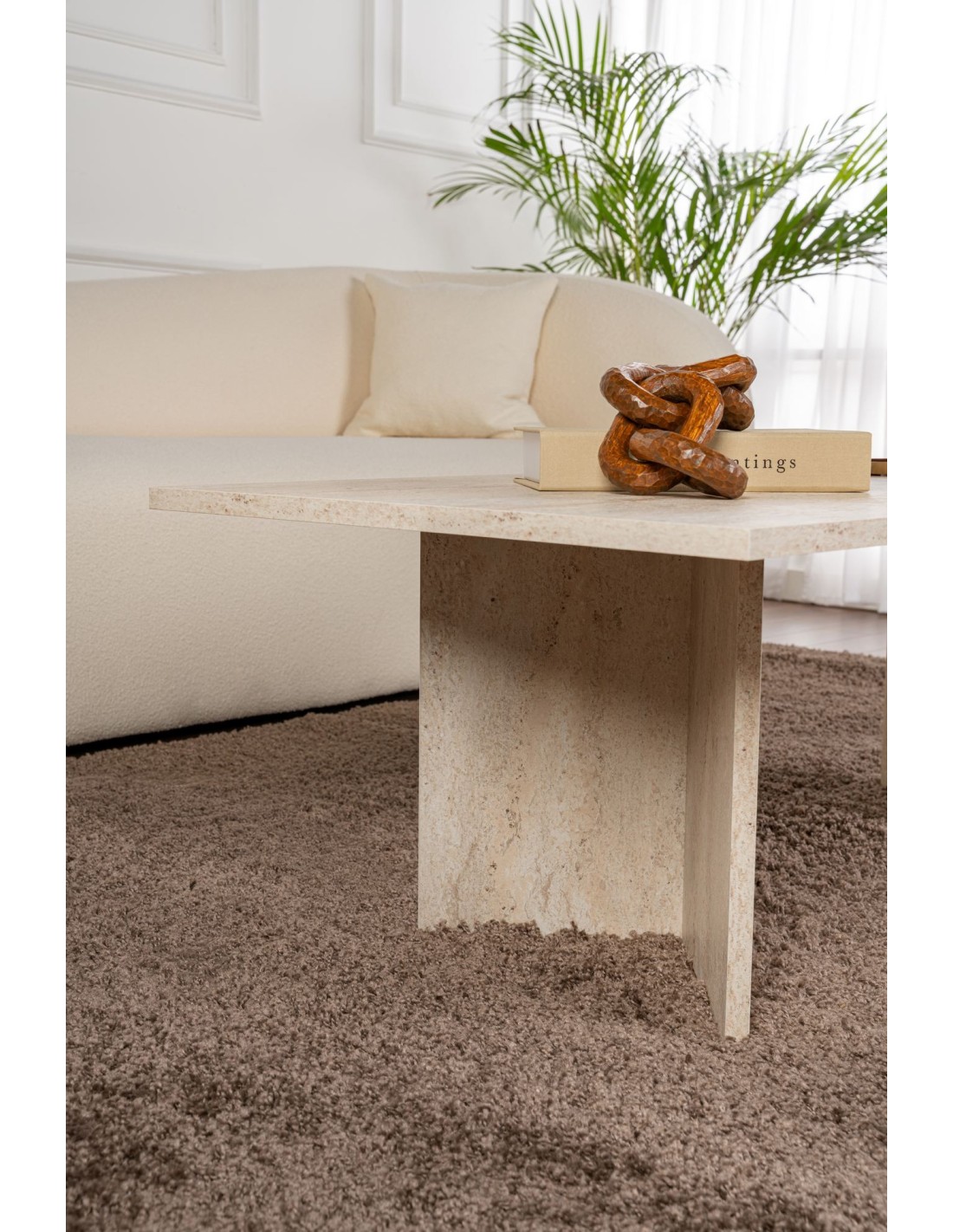 Transforma tu sala de estar en un refugio acogedor y elegante con nuestra impresionante mesa de centro Silke en acabado travertino. Fabricada con tablero de partículas recubierto de melamina al 100%, esta mesa de centro no solo es duradera, sino que también irradia un aspecto lujoso que elevará la atmósfera de tu espacio.