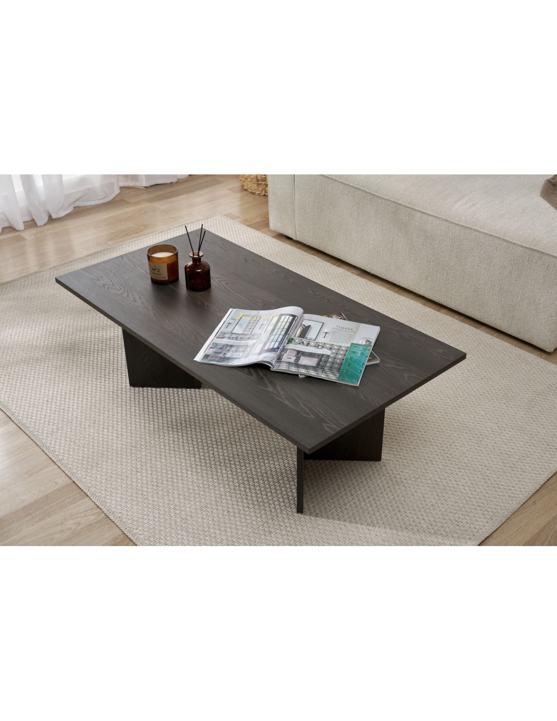 Fabricada con tablero de partículas recubierto de melamina al 100%, esta mesa de centro no solo es estilosa, sino también duradera. El grosor de 18 mm garantiza estabilidad y solidez, mientras que sus generosas dimensiones ofrecen un amplio espacio para todos tus elementos esenciales.