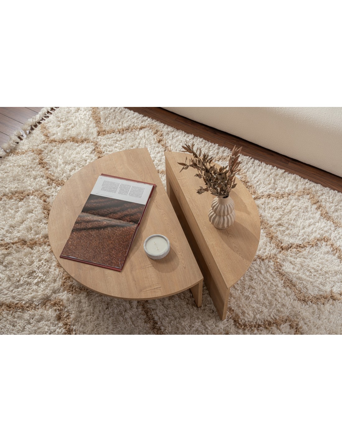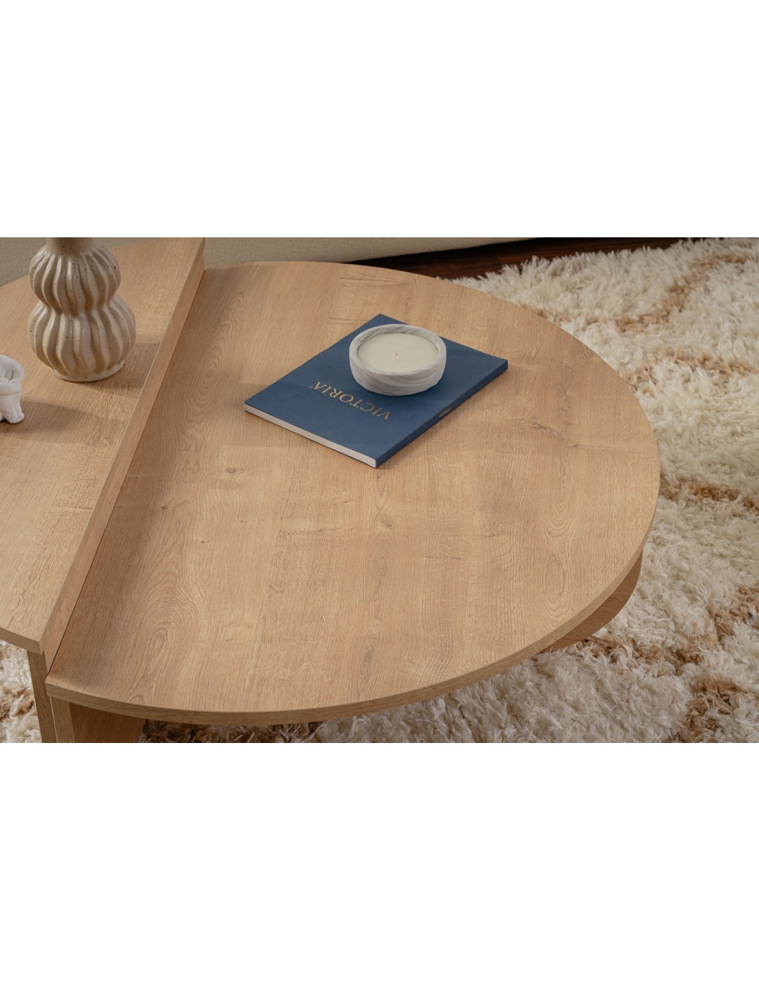 Transforma tu sala de estar en un espacio elegante y acogedor con nuestra impresionante mesa de centro Orfeo acabado roble miel. Fabricada con tablero de partículas recubierto de melamina al 100%, esta mesa de centro no solo es duradera, sino que también irradia un sentido de elegancia y sofisticación.