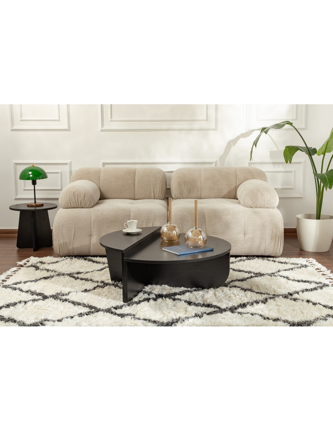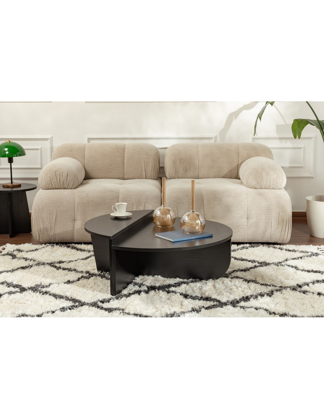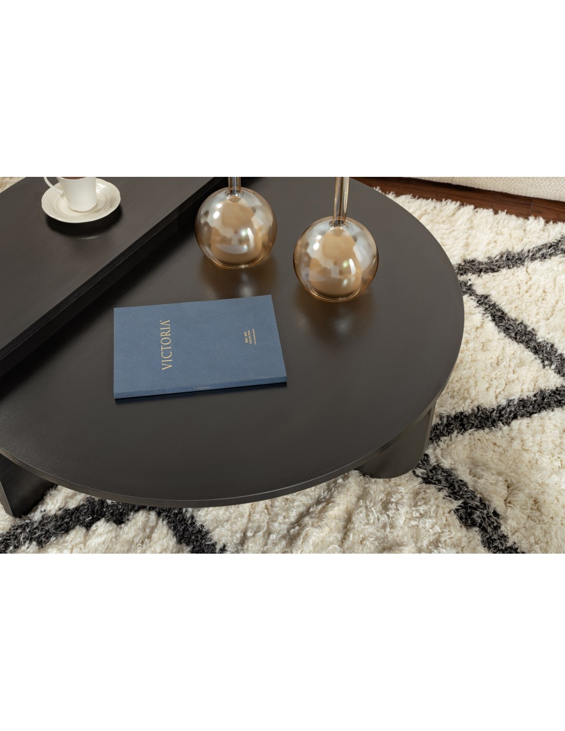 El rico acabado negro madera de esta mesa de centro añade calidez y profundidad a cualquier habitación, creando una atmósfera acogedora perfecta para relajarse o entretener a los invitados. Su diseño elegante y líneas limpias la convierten en una pieza versátil que puede complementar fácilmente cualquier estilo decorativo, ya sea moderno o tradicional.