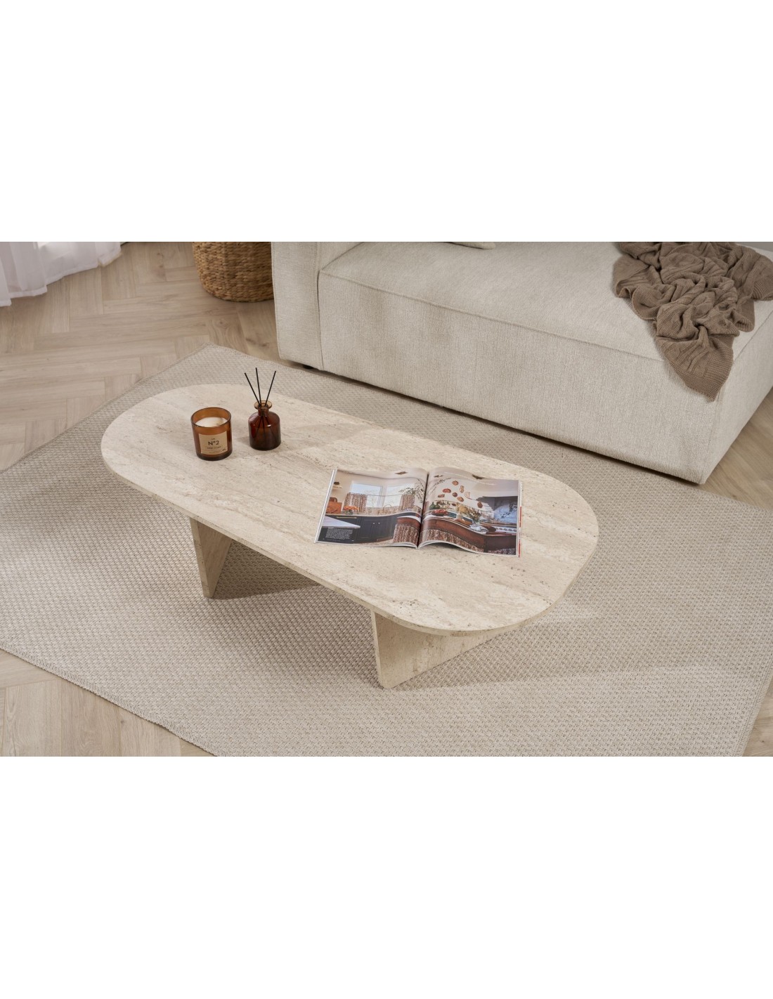 Agrega un toque de modernidad a tu hogar con esta mesa de centro elegante y contemporánea. Su acabado efecto travertino aporta riqueza a cualquier estancia, mientras que su amplia superficie ofrece espacio suficiente para tus libros, revistas y elementos decorativos favoritos. Ya sea que estés disfrutando de una taza de café con amigos o simplemente relajándote en el sofá, esta mesa de centro es la adición perfecta a tu espacio vital.