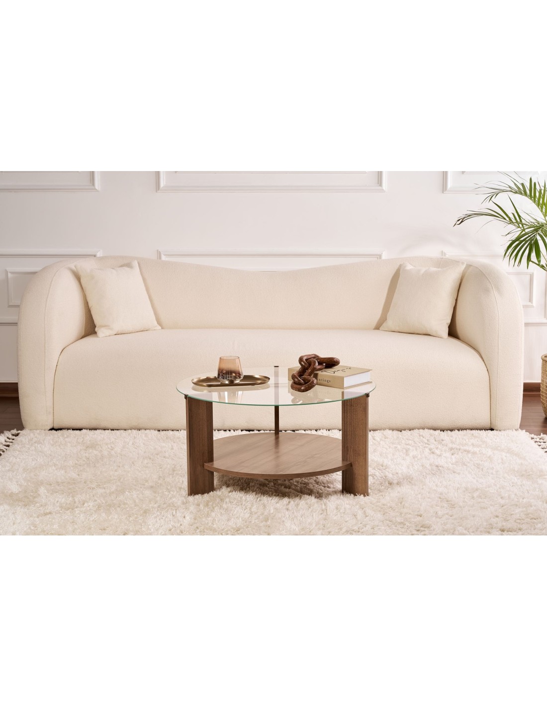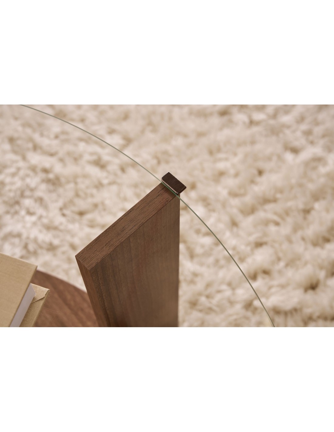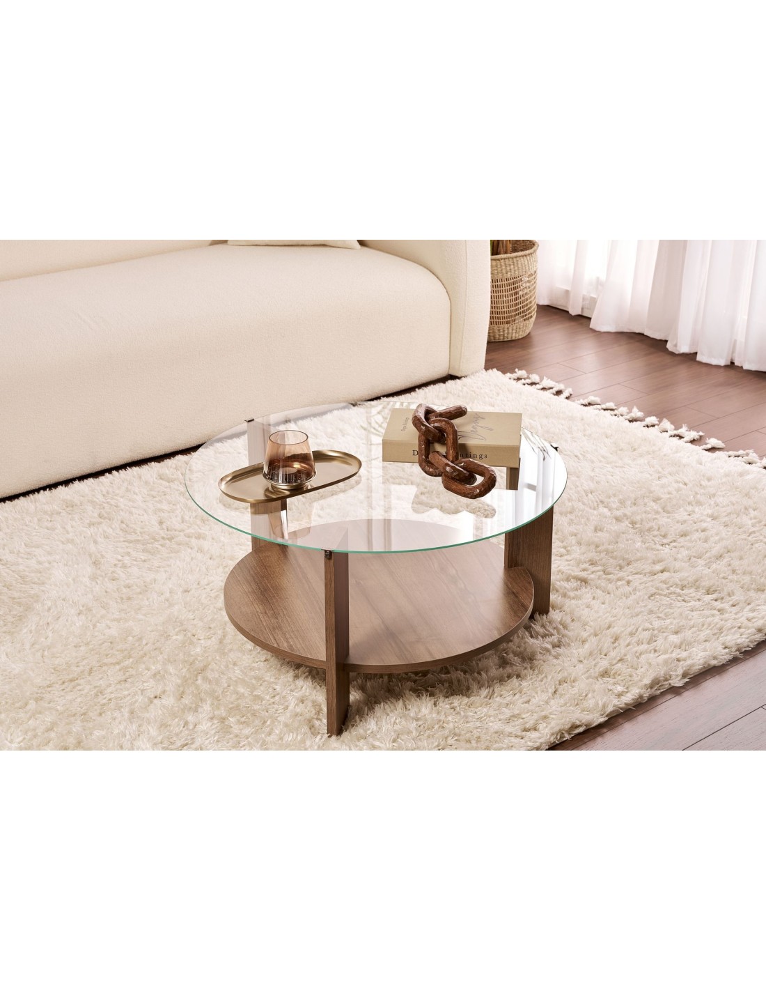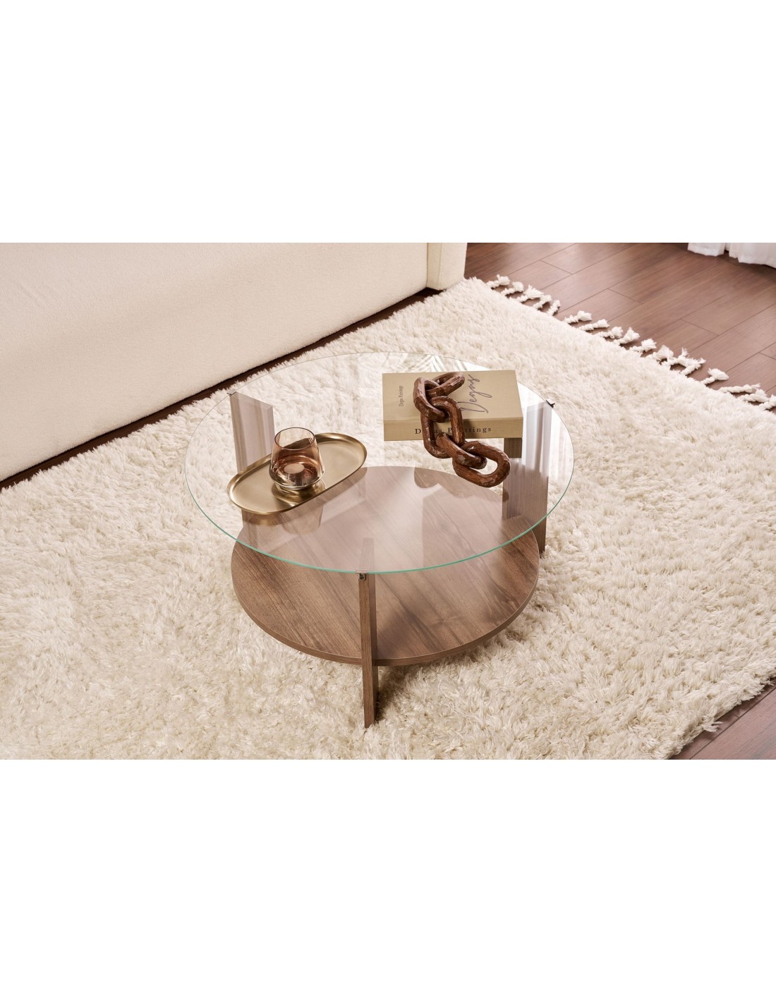 Mesa de Centro RITA, MDF Acabado Nogal / Cristal Transparente