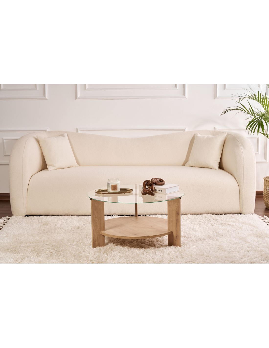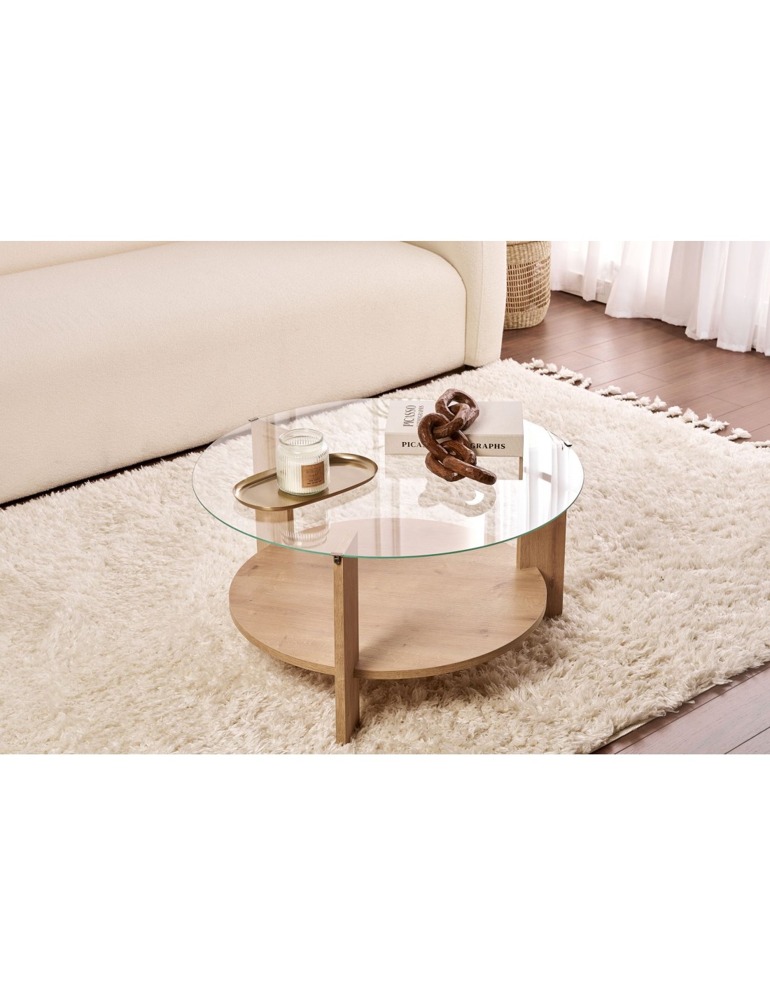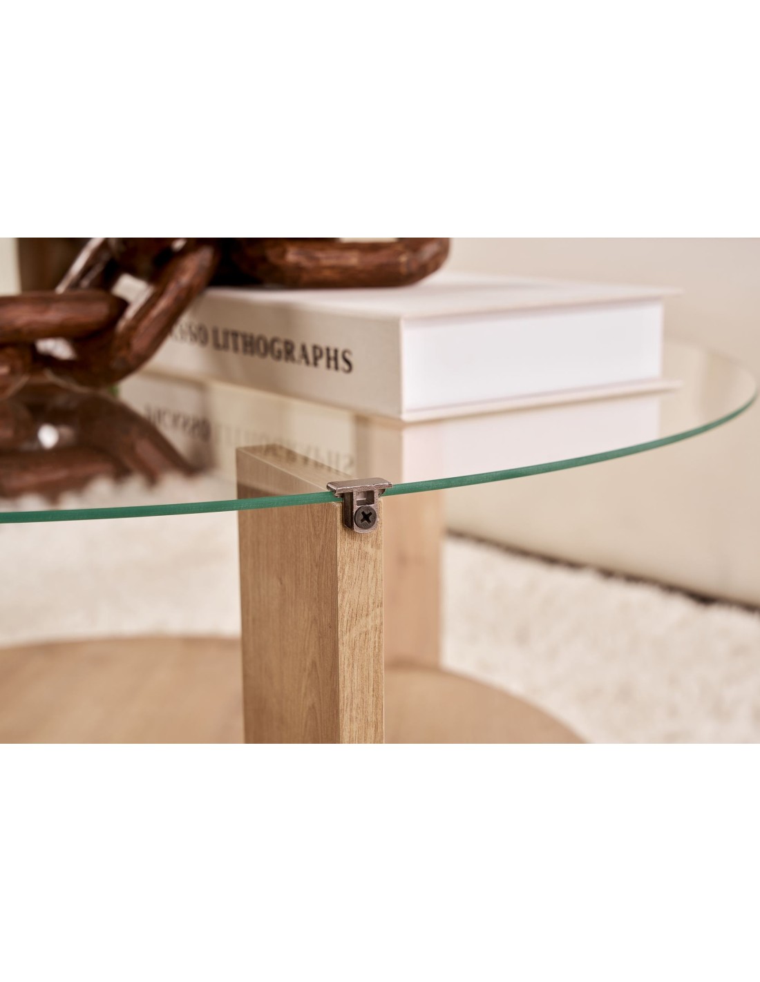 Mesa de Centro RITA, MDF Acabado Roble Zafiro / Cristal Transparente