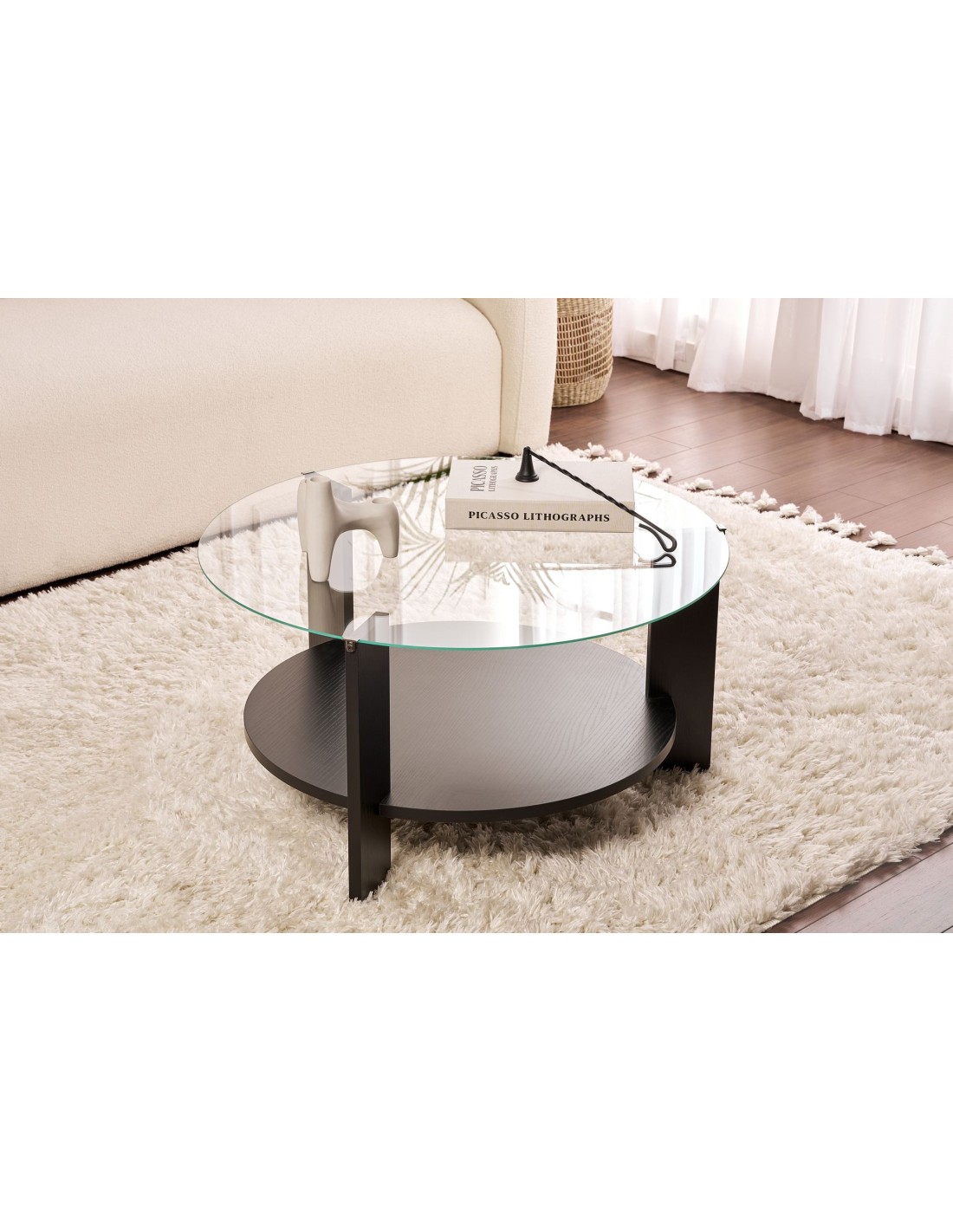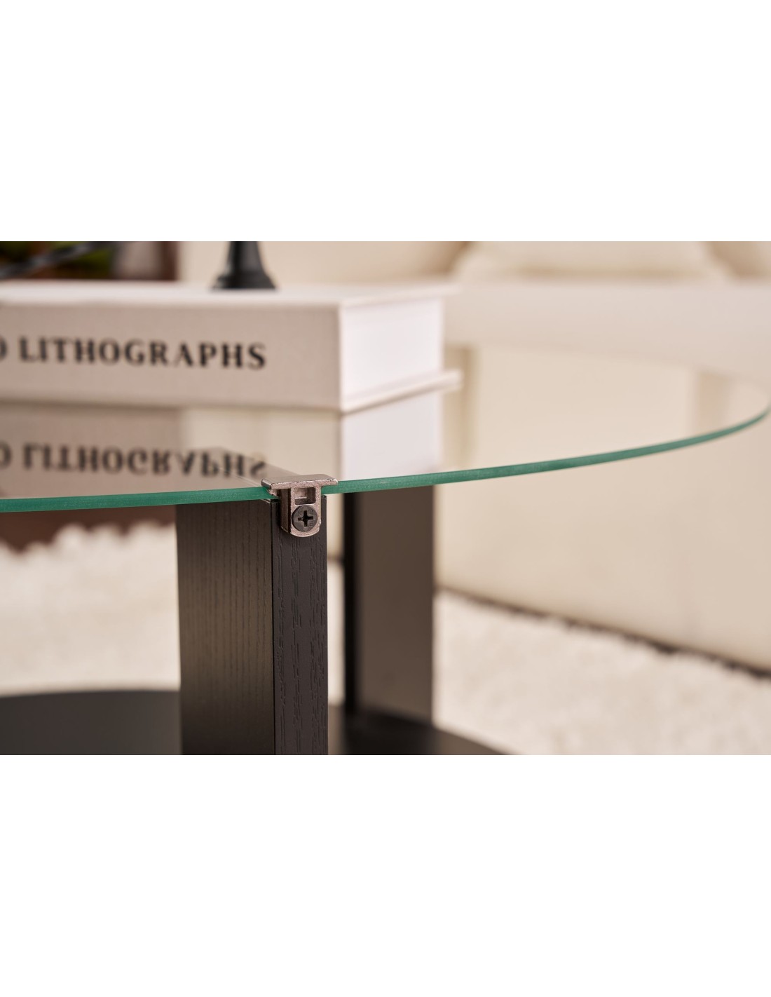 Mesa de Centro RITA, MDF Acabado Madera Negra / Cristal Transparente