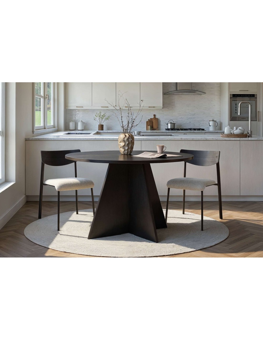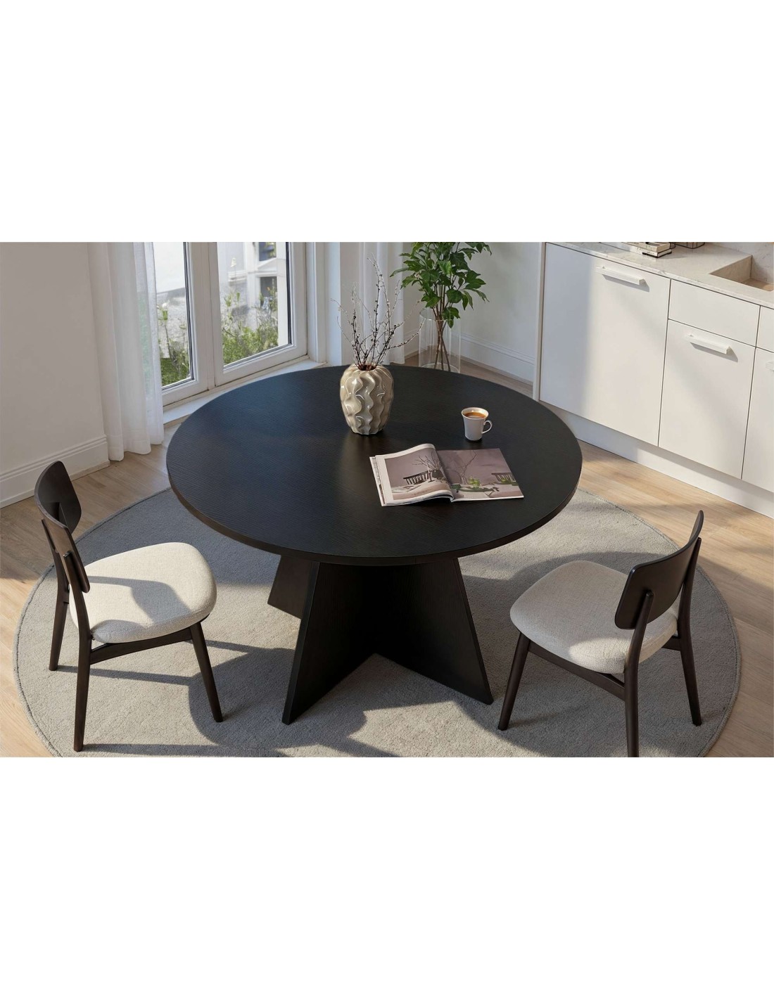 Mesa KALI Ø120 cm de Comedor, MDF Acabado Madera Negra