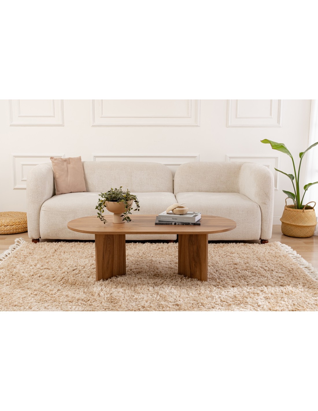 Mesa de Centro Ovalada CELLO, MDF Acabado Madera Laúd