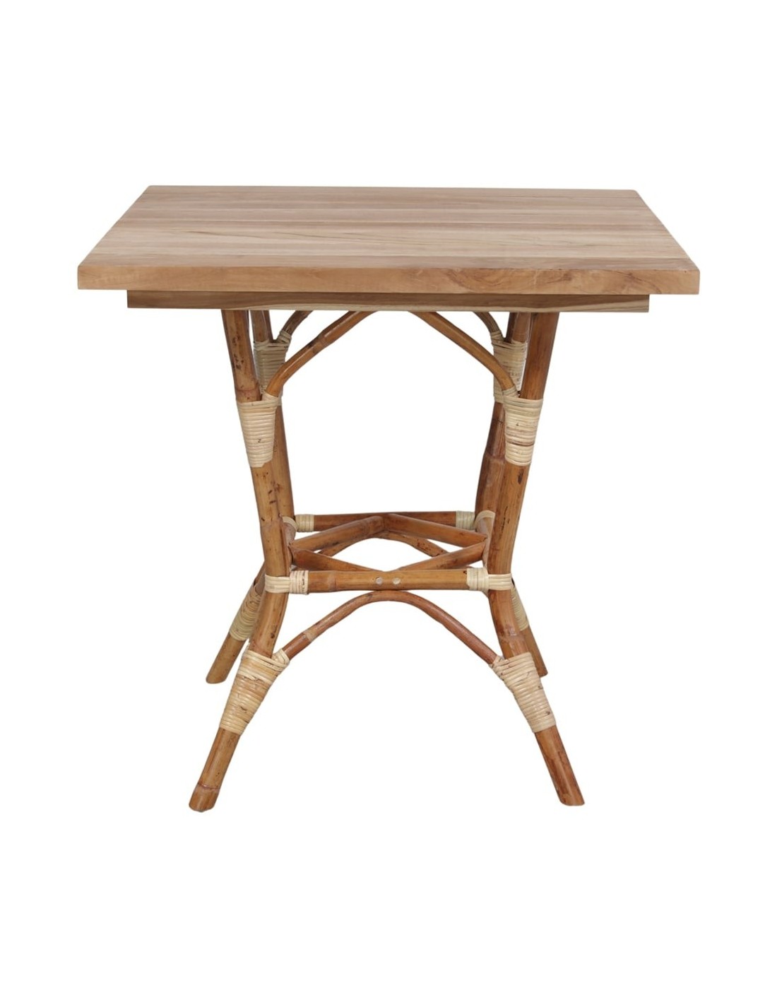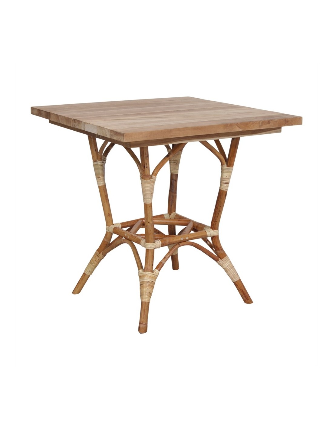Mesa De Comedor Lofoten De Madera De Teca Y Ratán Natural Cuadrada 70x70 Cm