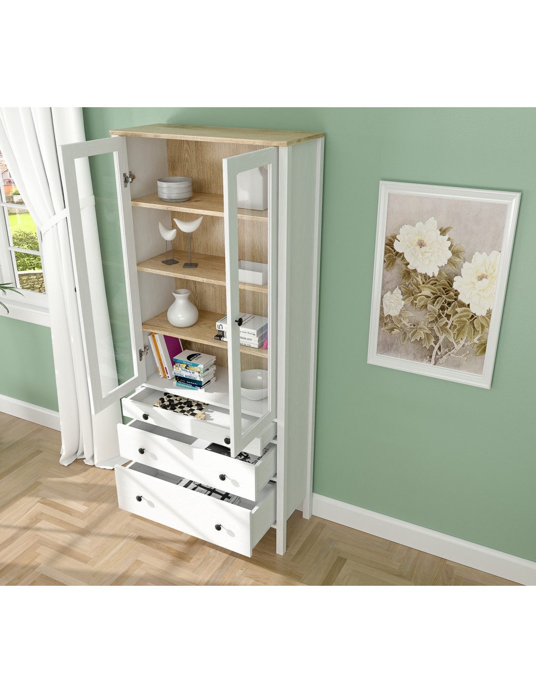Gracias a su diseño elegante y acabado en madera blanca, esta vitrina elevará al instante el aspecto de cualquier estancia con un toque de calidez y luminosidad, convirtiéndola en la adición perfecta a cualquier espacio decorativo.