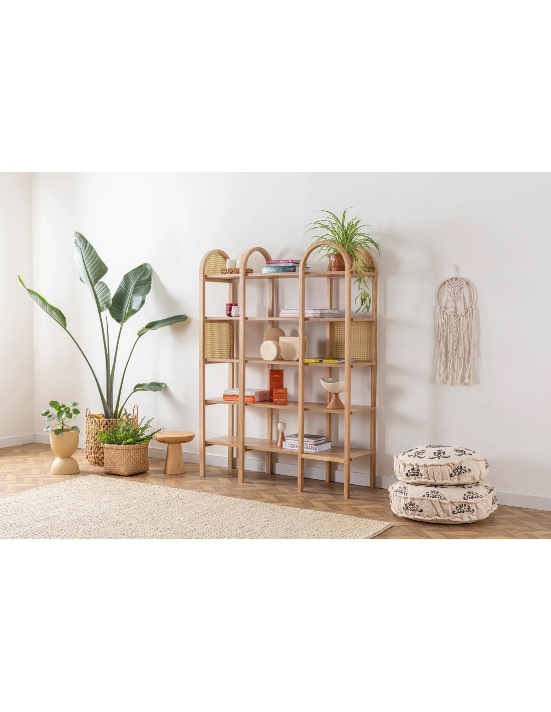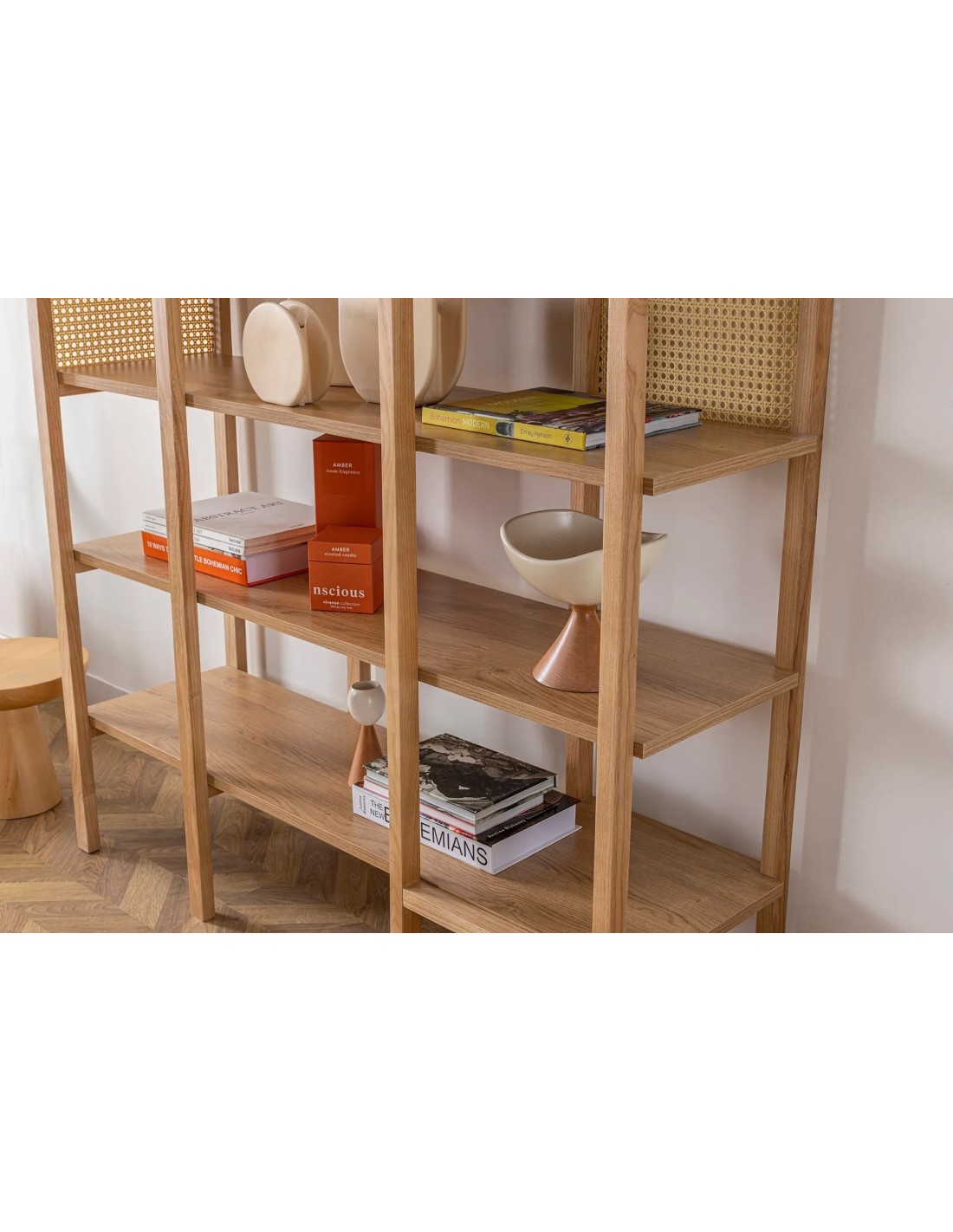 Sus estantes fabricados 100% en aglomerado recubierto de melamina garantizan resistencia y una belleza longeva, mientras que el acabado natural añadirá un toque de calidez y sofisticación a cualquier estancia, encajando perfectamente tanto en interiores modernos como tradicionales.